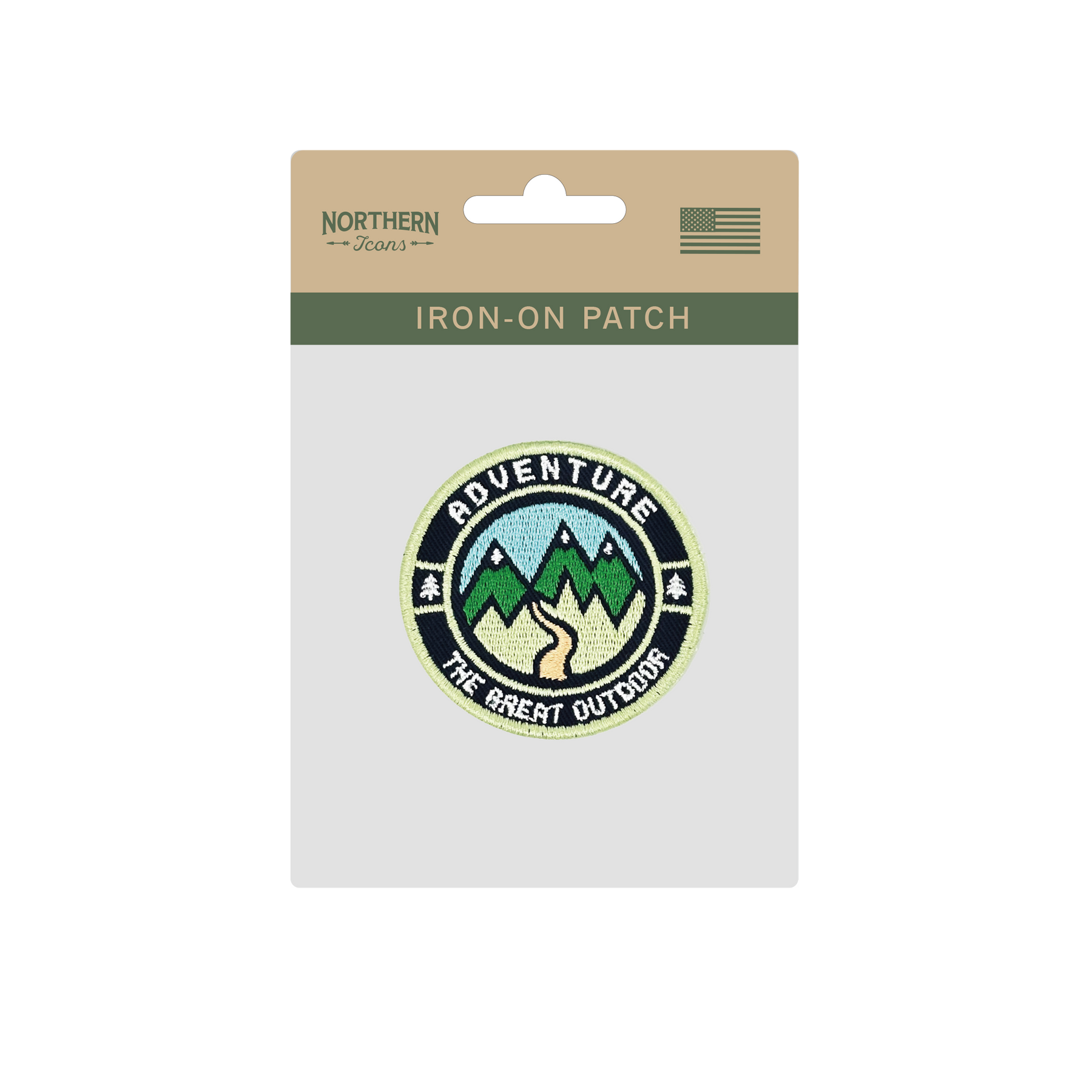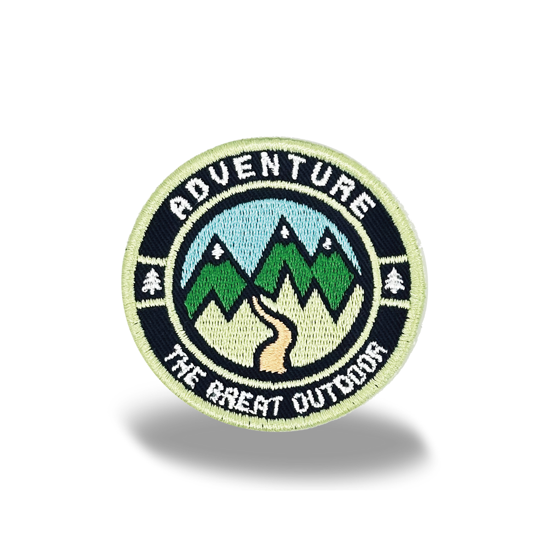 Celebrate the call of the mountains with this embroidered patch. Featuring a bold design of green peaks, a winding trail, and surrounding trees, it embodies the spirit of outdoor exploration. The words “Adventure” and “The Great Outdoor” frame the design, making it a perfect emblem for nature lovers. With an iron-on backing for easy application and the option to sew on for extra durability, this patch is ideal for jackets, backpacks, and gear.