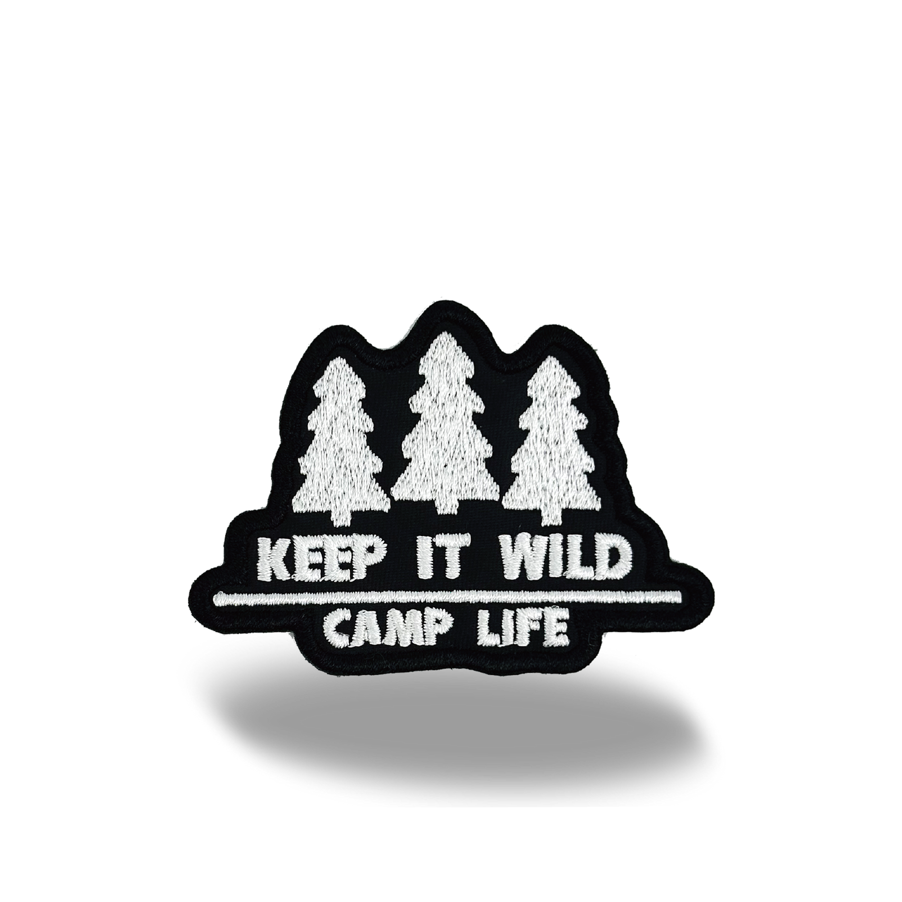 This embroidered patch features three pine trees in a bold silhouette with the phrase “KEEP IT WILD – CAMP LIFE.” The black-and-white contrast delivers a minimal yet powerful design, perfect for nature lovers and camping enthusiasts. Add it to jackets, backpacks, or outdoor gear to express your passion for wilderness adventures and the simple joy of camp life.
