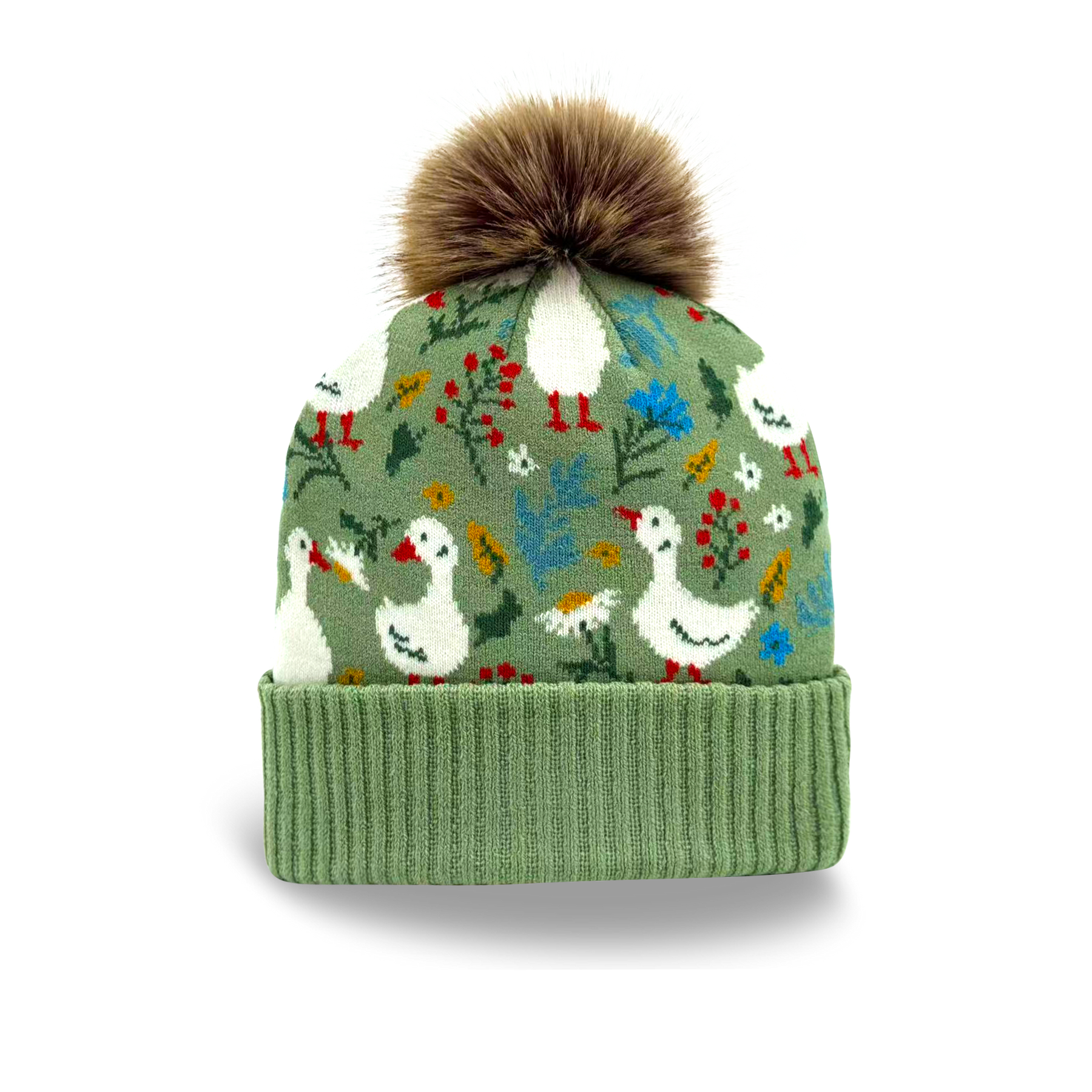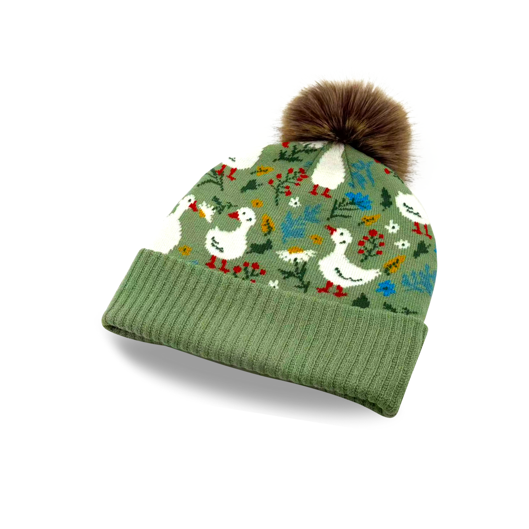 This Kids Goose Pattern Pom Knit Beanie is designed to bring warmth and gentle charm to everyday cold-weather wear. Inspired by playful farm-style illustrations and nature details, the repeating goose motifs are paired with flowers and foliage, creating a calm, storybook-inspired look that feels friendly and comforting.