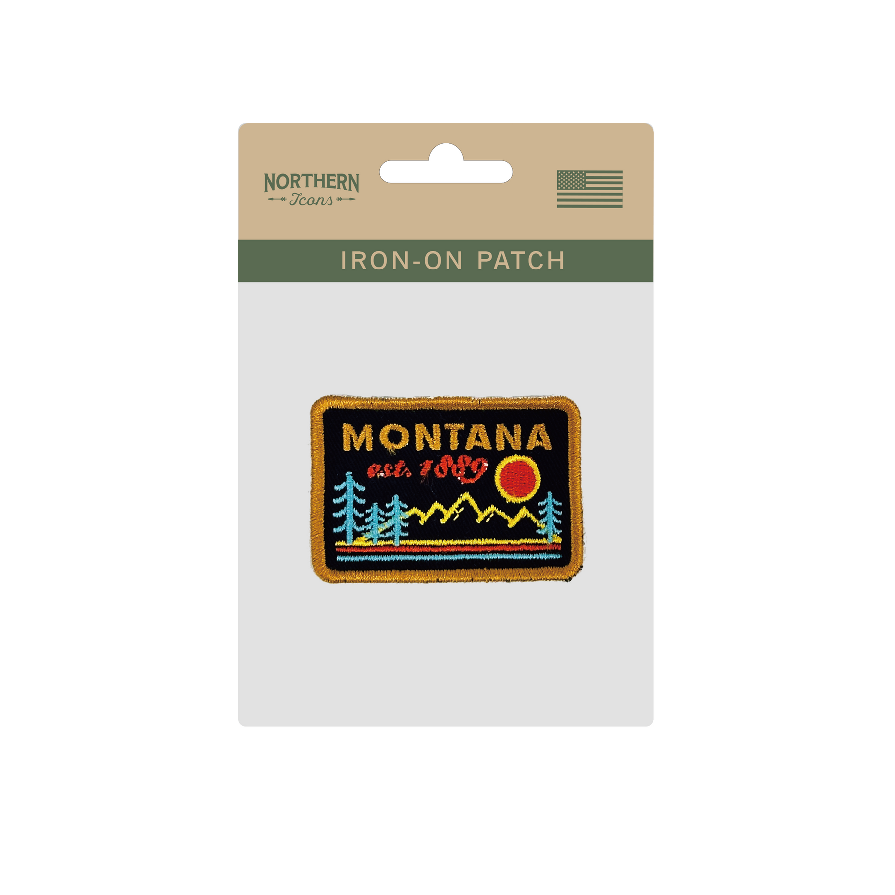 This embroidered patch captures the spirit of Montana with a bold sunset, evergreen trees, and mountain peaks. The golden border highlights the state’s natural beauty, while the retro-inspired typography adds a timeless outdoor charm. Perfect for travelers and adventurers looking to carry a piece of Montana with them.