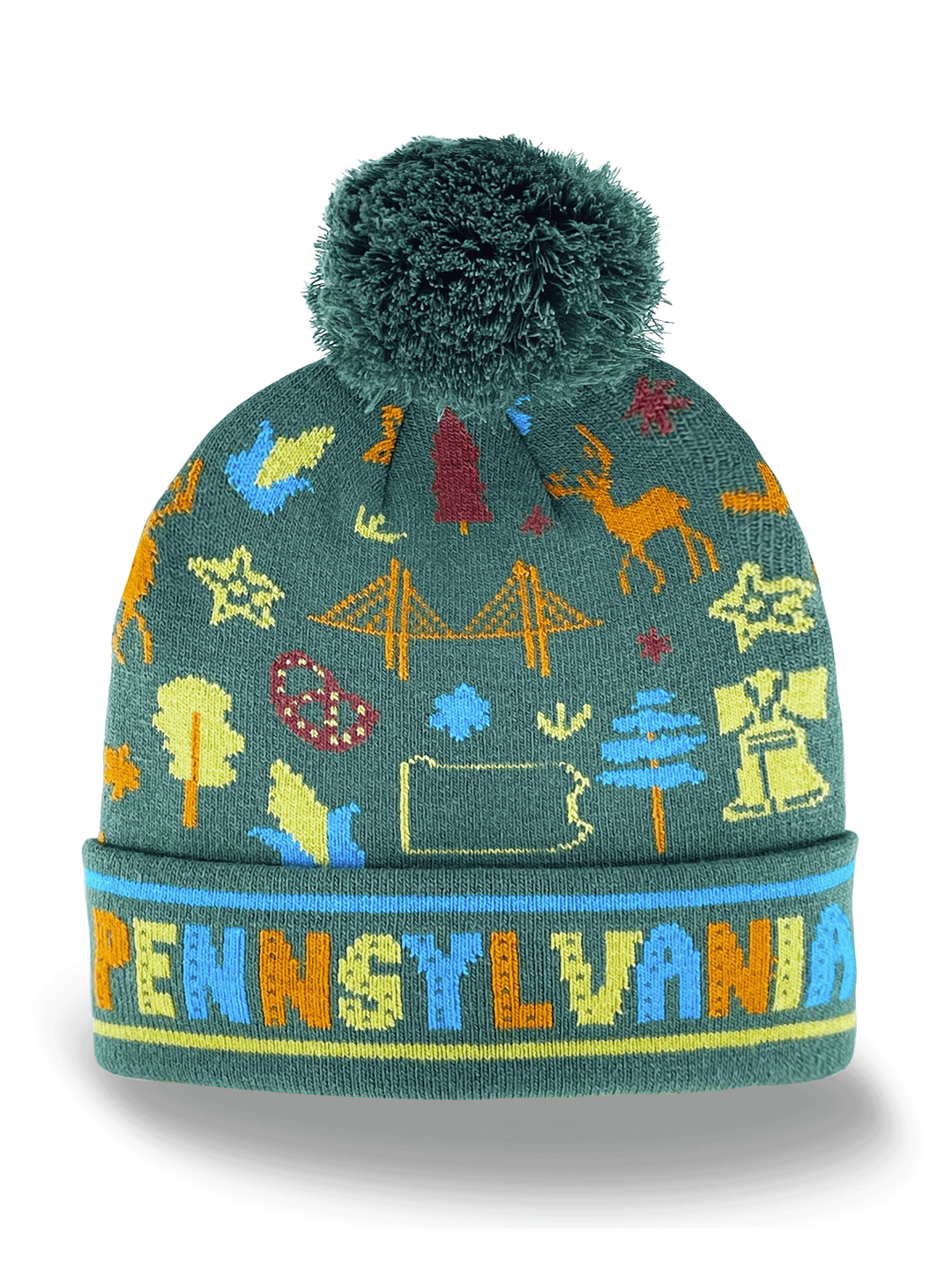 Pennsylvania Knit Beanie with Liberty Bell, Pretzel, Deer & State Icons