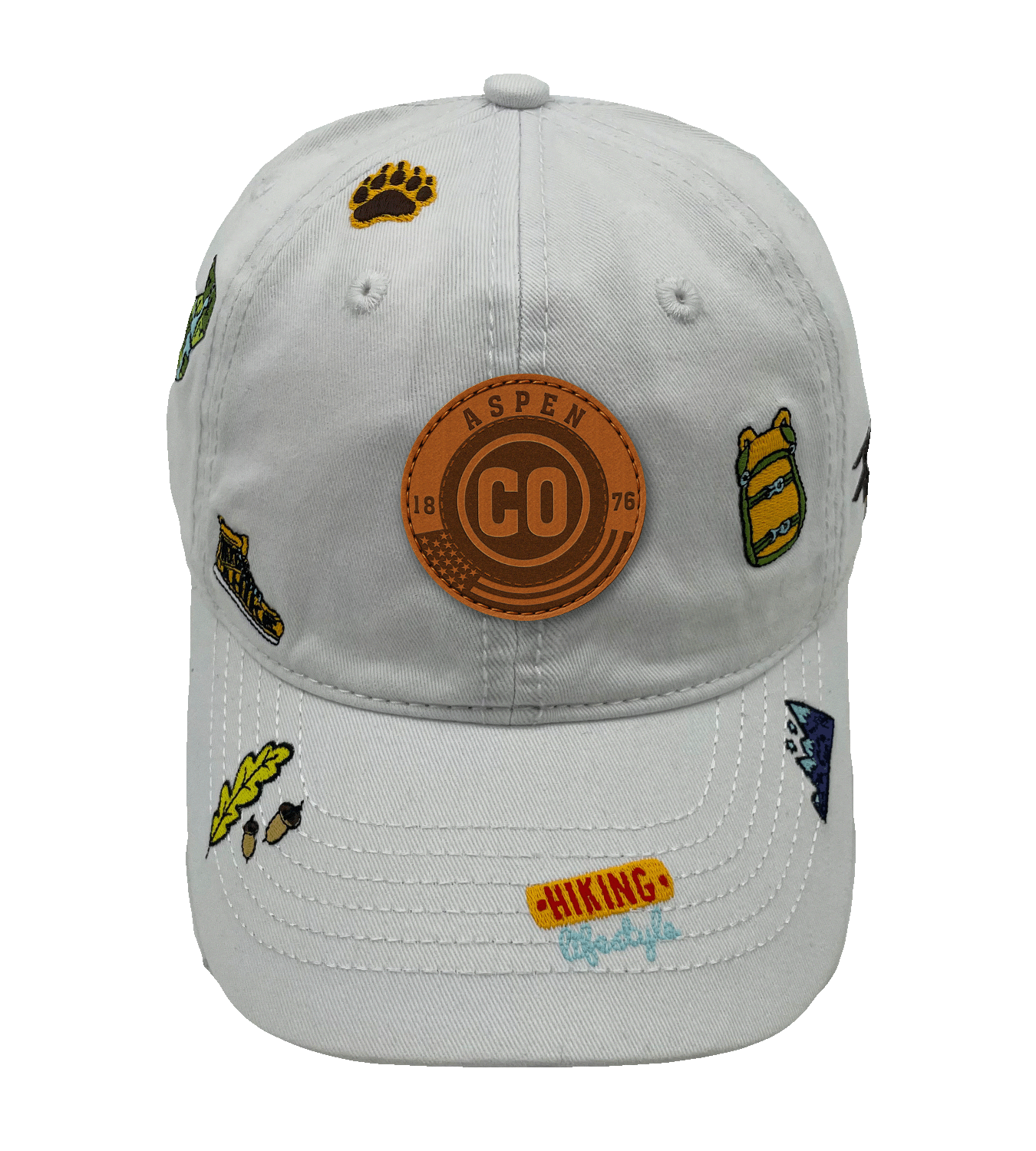 The Aspen Hiking Lifestyle Cap captures the spirit of Colorado’s alpine adventures and mountain escapes. Centered with a bold “ASPEN CO 1876” badge, this cap combines rustic charm with playful embroidered patches, making it an ideal find for hiking lovers, outdoor explorers, and souvenir shoppers.