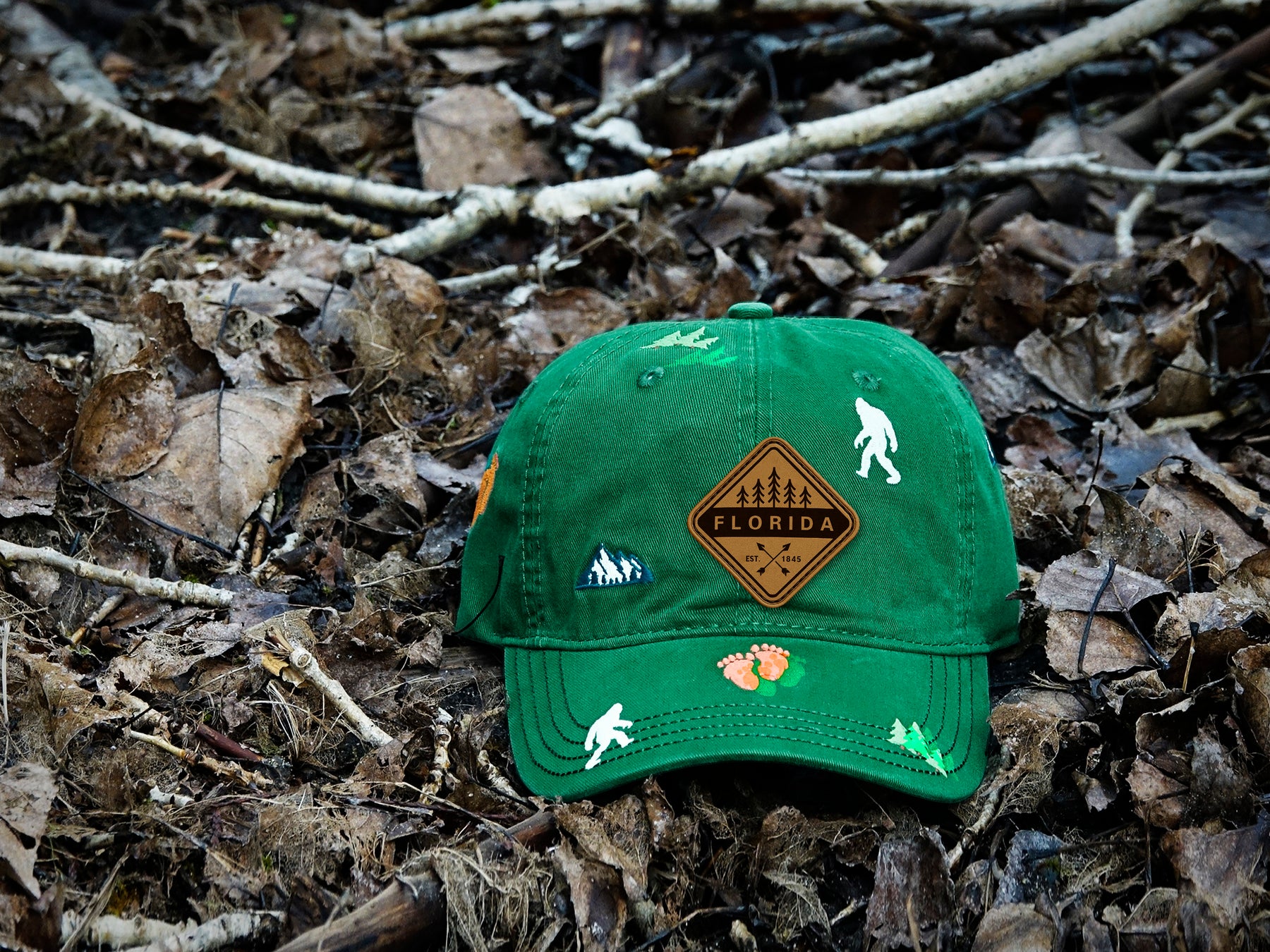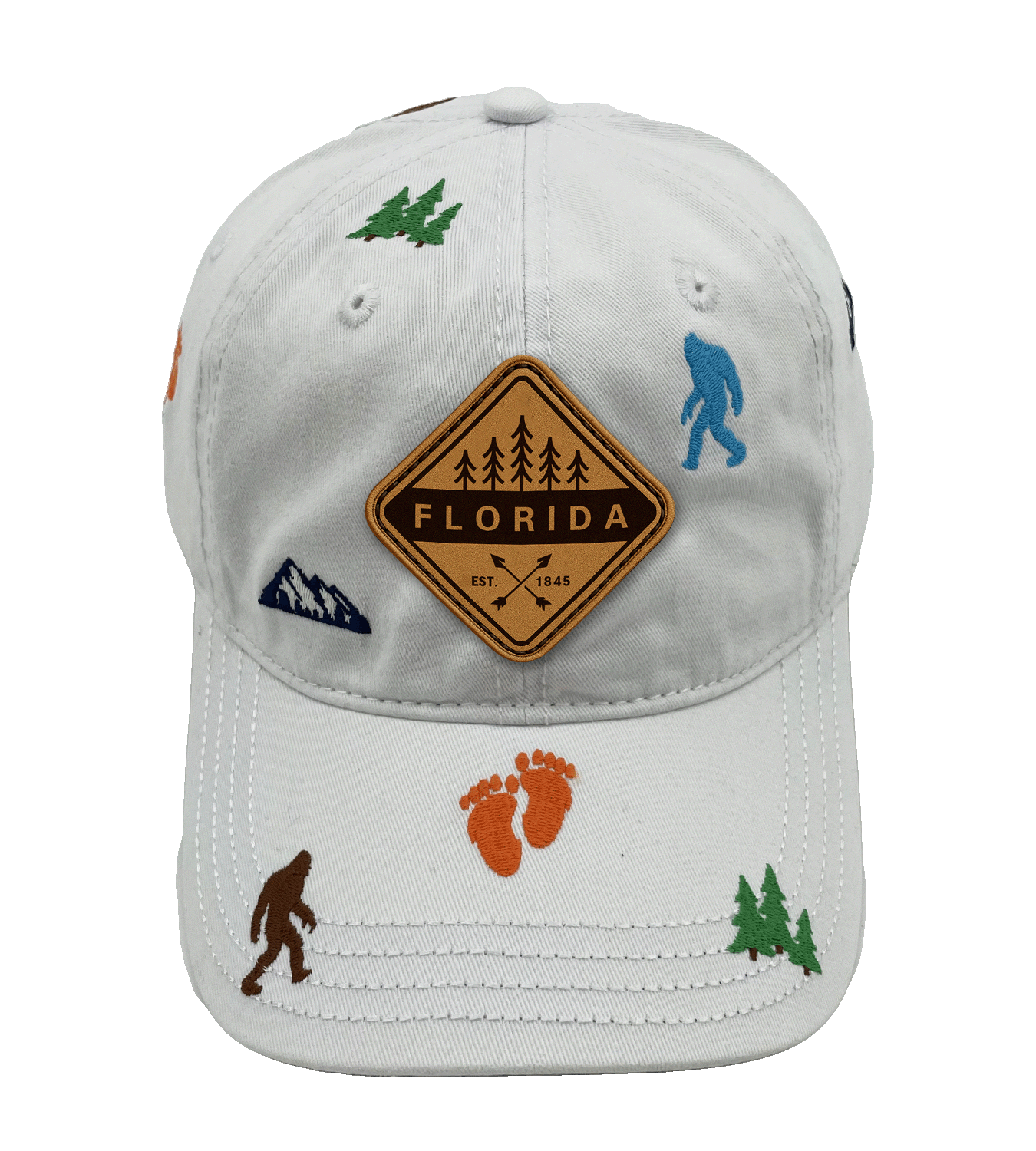 Embrace your wild side with the Florida Explorer Patch Hat, a playful tribute to the Sunshine State. Featuring a custom leather-style patch that proudly displays “FLORIDA” along with the state's founding year, this hat blends quirky embroidered elements like Bigfoot, footprints, trees, and mountains to create a fun outdoorsy vibe. Whether you're adventuring through swamps, hiking forest trails, or beachcombing along the coast, this cap adds a touch of wilderness charm to any outfit.