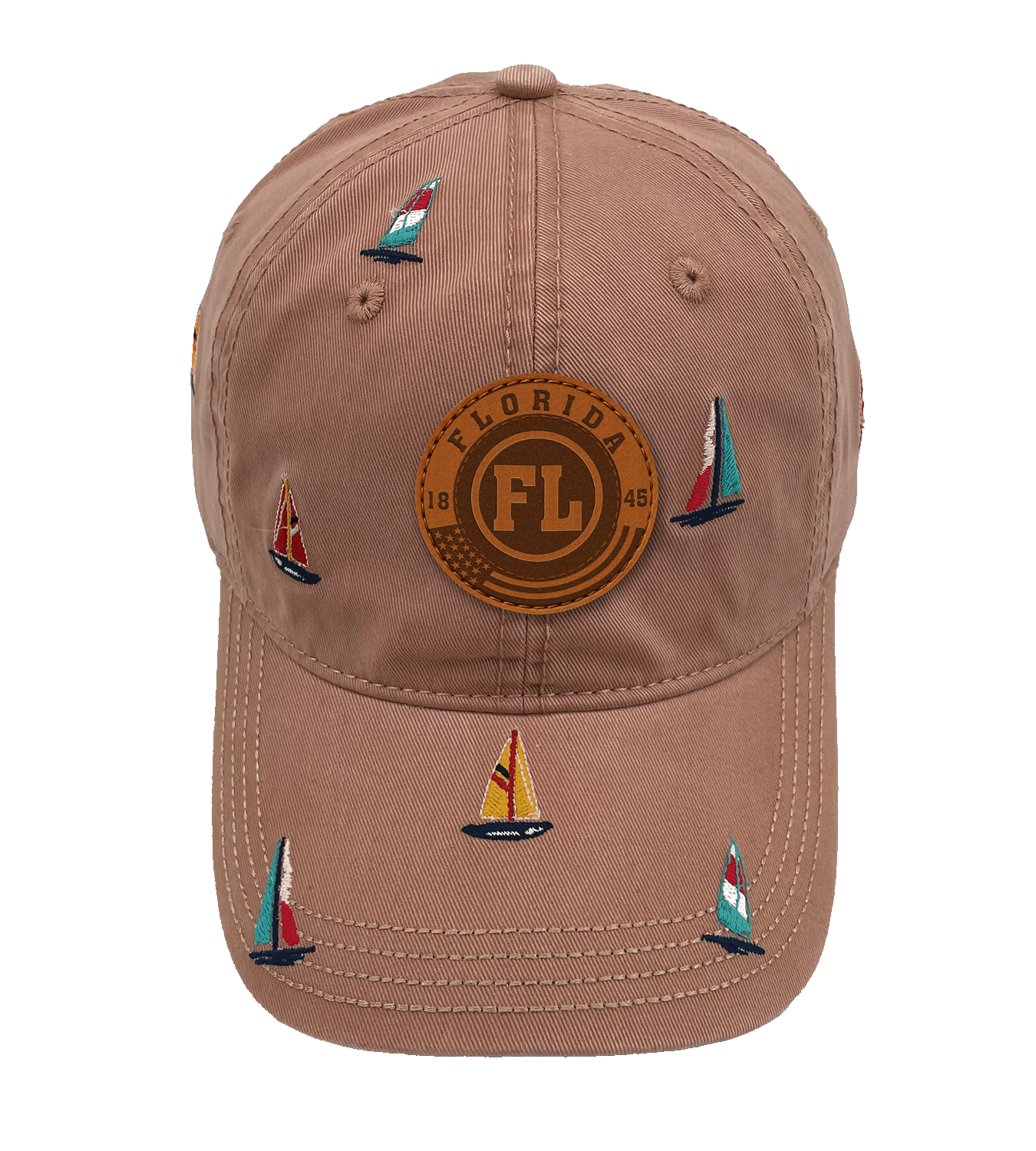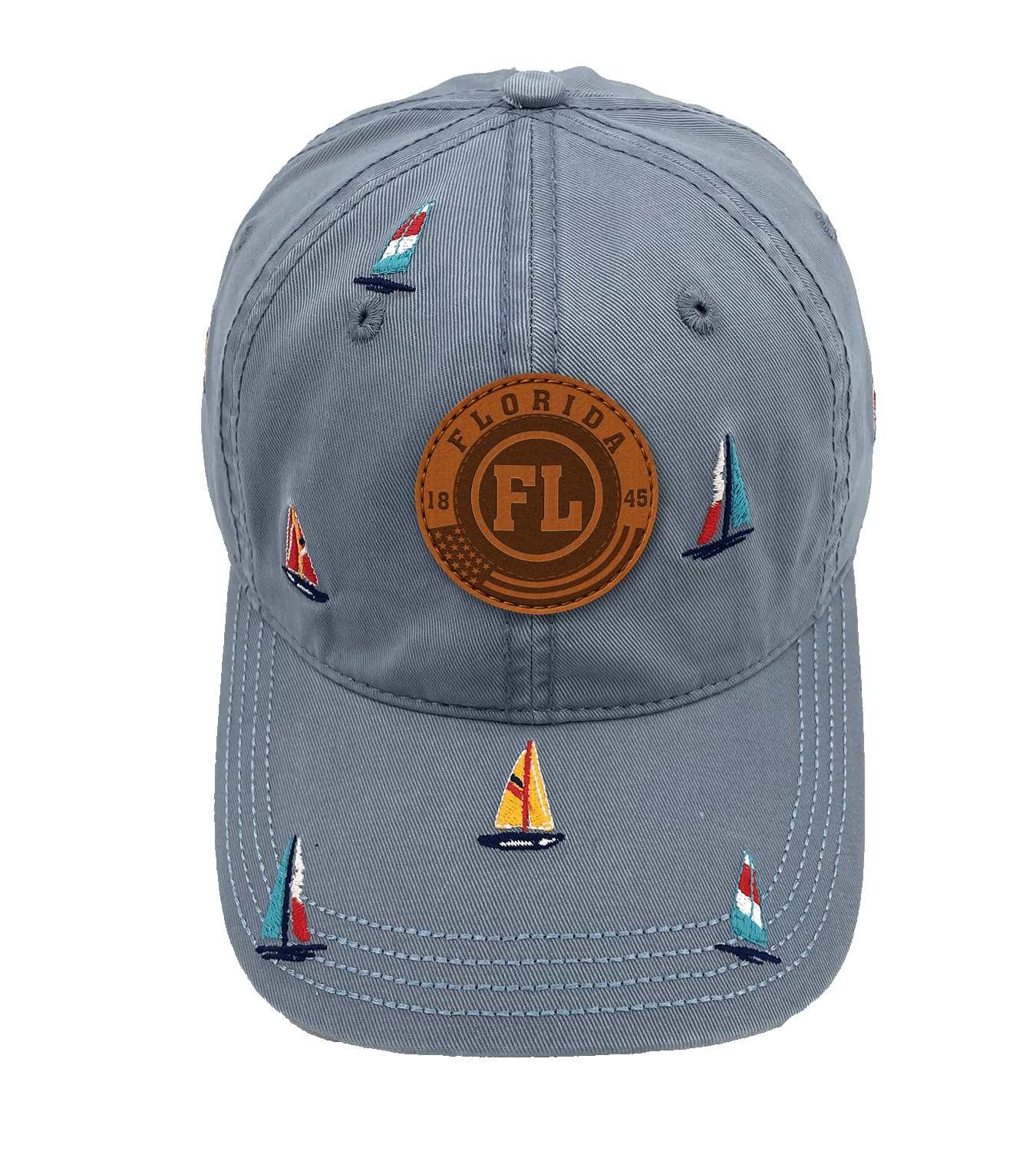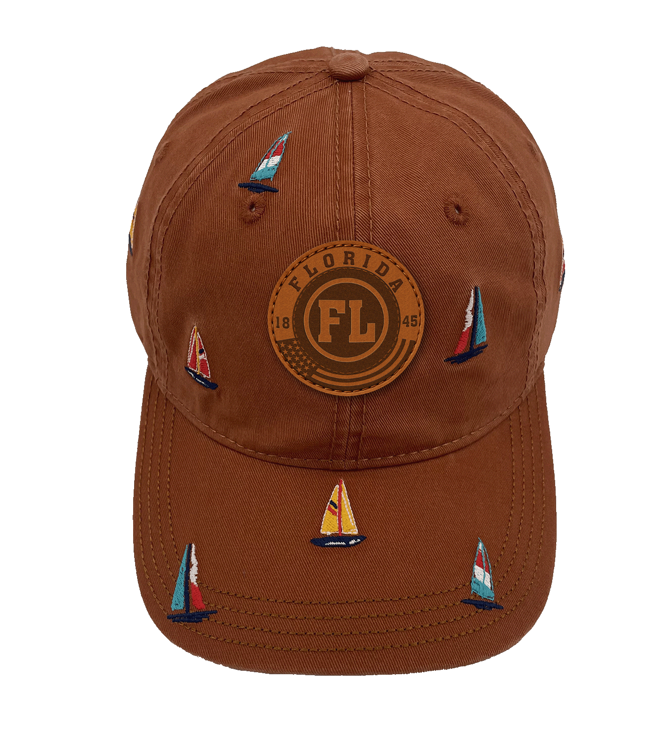 Add a touch of coastal adventure with the Florida Sailing Adventure Baseball Cap. Inspired by Florida’s sunny beaches and vibrant sailing culture, the design features embroidered sailboats in bright colors, capturing the carefree spirit of ocean life. The central faux-leather patch highlights “FLORIDA EST. 1845” with the initials “FL,” honoring the state’s heritage and coastal charm. The cap’s low-saturation base color enhances the nautical theme, making it a versatile accessory for seaside escapes and everyday wear. Perfect for travelers, outdoor lovers, and those who embrace a breezy, coastal lifestyle.