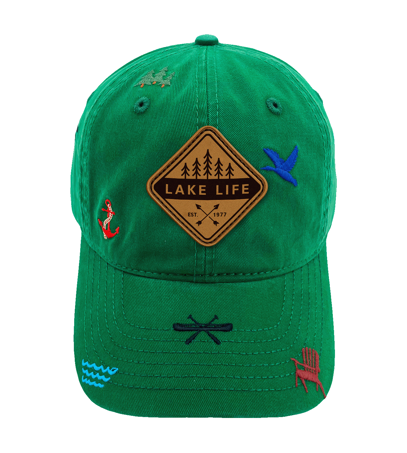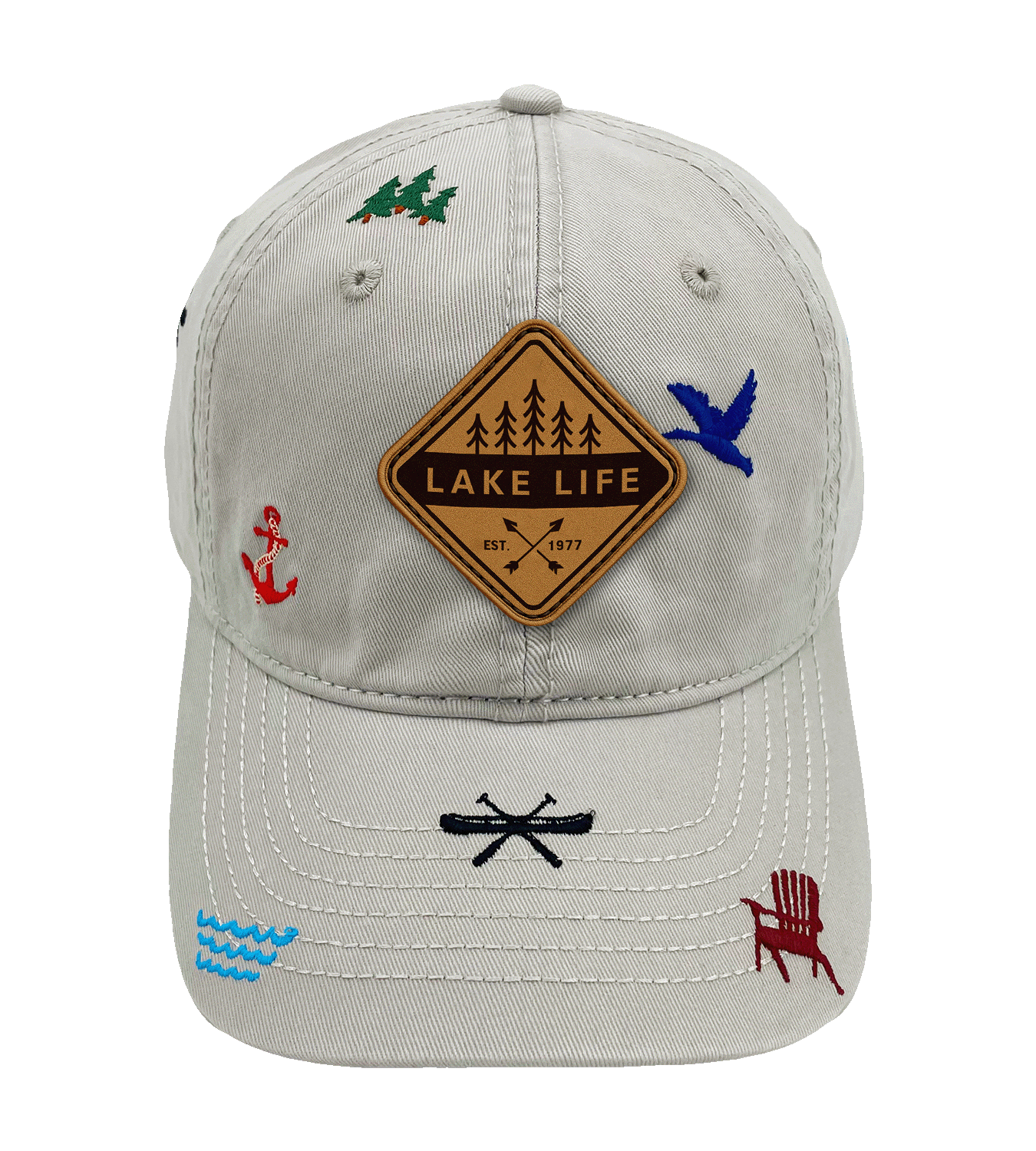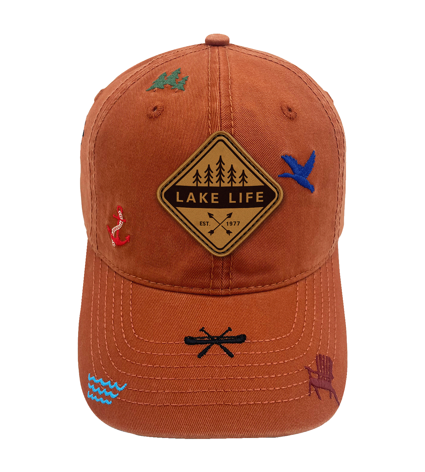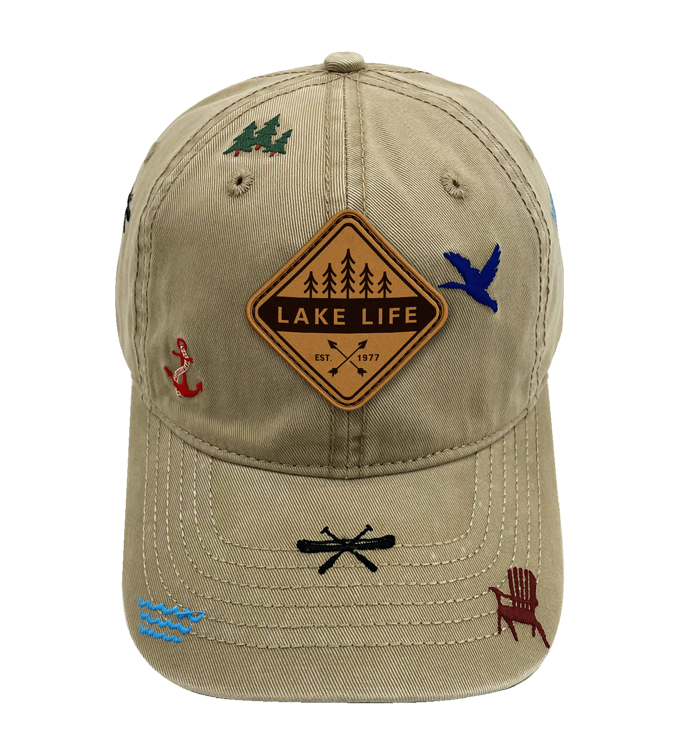 Inspired by the relaxed charm of lakeside adventures, this cap is perfect for gift shops, outdoor stores, and souvenir retailers. With playful embroidered icons and a vintage-style patch, it captures the essence of lake living.
