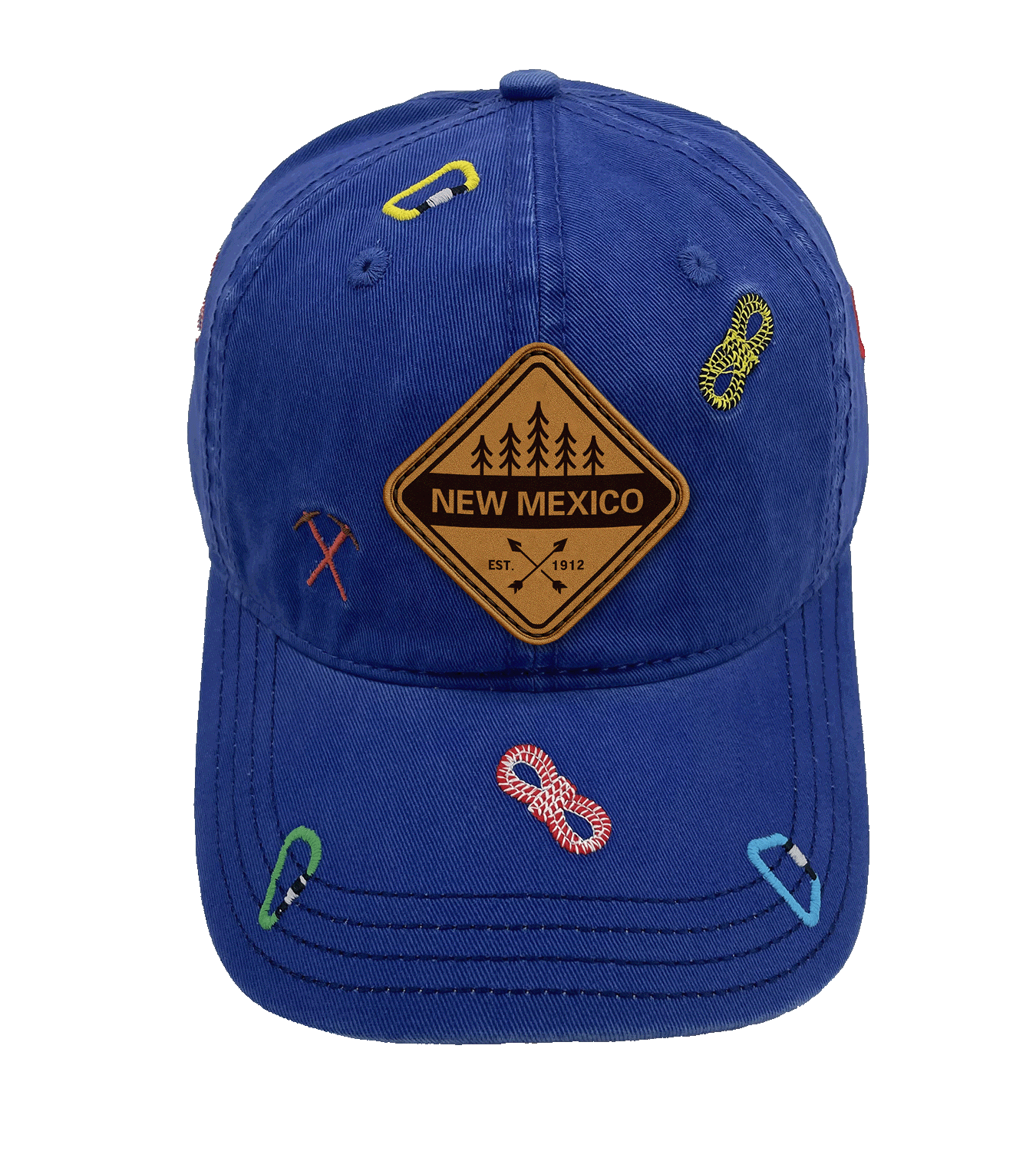 • 🧗 Embroidered Climbing Icons – carabiners, climbing ropes, and ice axes celebrating New Mexico’s alpine adventure culture