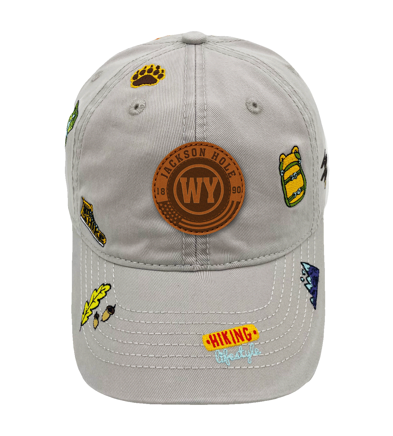 Center patch reads “JACKSON HOLE WY 1890,” honoring Wyoming’s statehood and one of its most iconic outdoor destinations