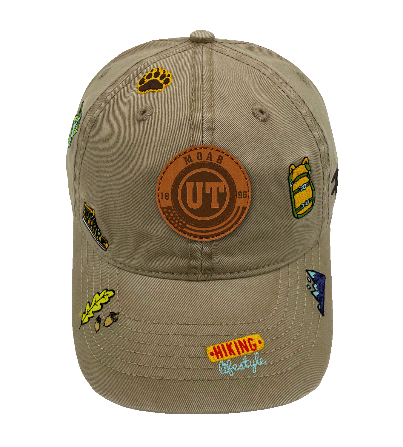 The Moab Hiking Lifestyle Cap celebrates Utah’s red rock canyons, desert trails, and adventurous outdoor culture. Featuring a bold “MOAB UT 1896” patch and nature-inspired embroidery, this cap is ideal for hikers, desert explorers, and fans of the iconic Moab landscape.