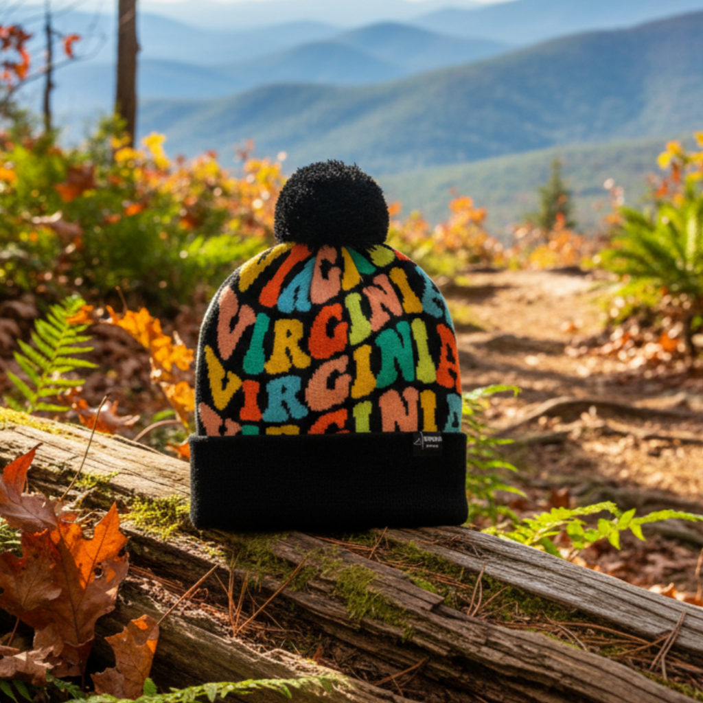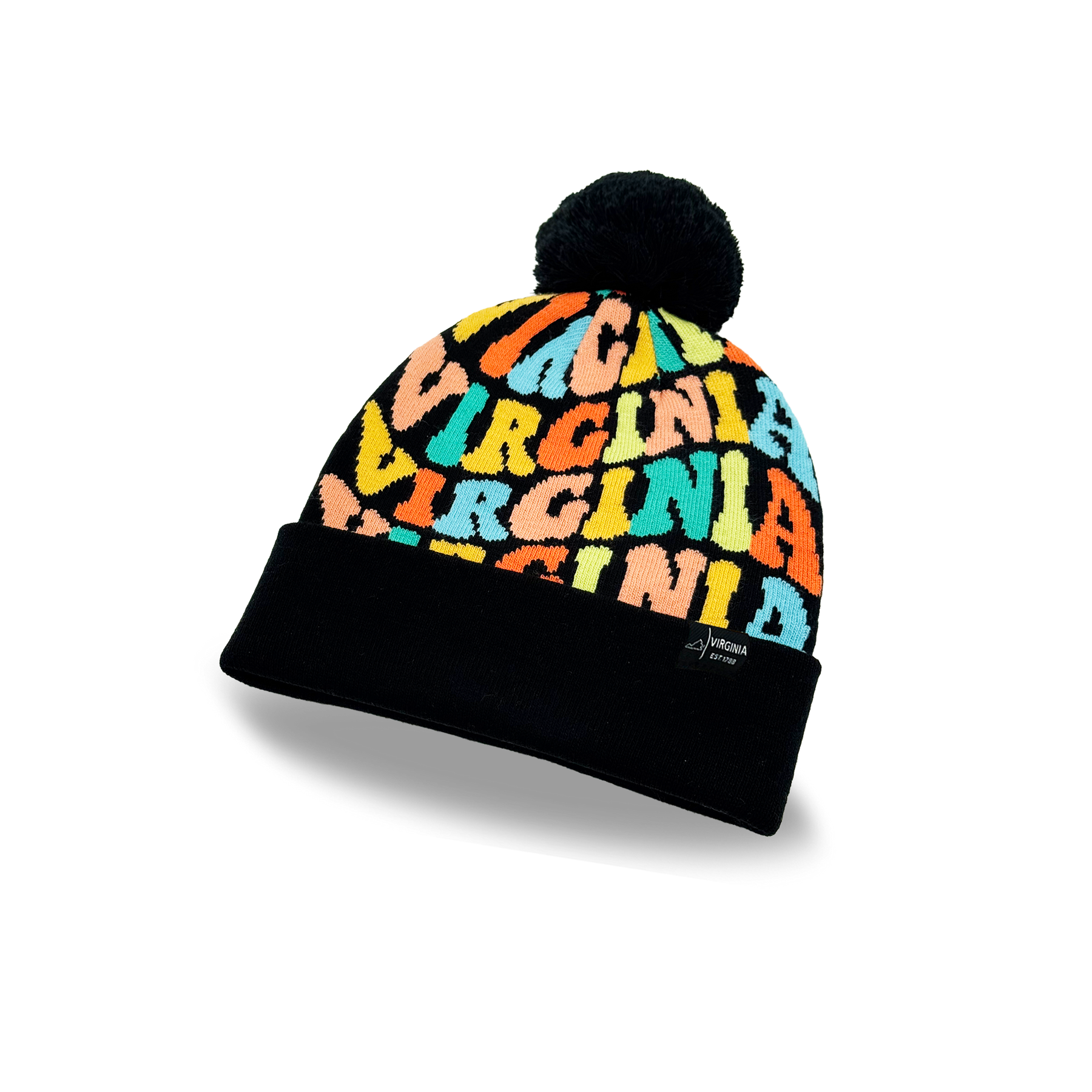 Celebrate Virginia’s classic charm and warm Southern character with the VIRGINIA Colorful Letter Knit Pom Pom Beanie, a lively mix of vintage-inspired design and everyday comfort. Drawing from Virginia’s rich history, rolling landscapes, and coastal energy, this beanie features playful multicolor “VIRGINIA” lettering in warm tones of orange, teal, yellow, and peach. The bold retro type gives a cheerful personality to a cold-weather essential.