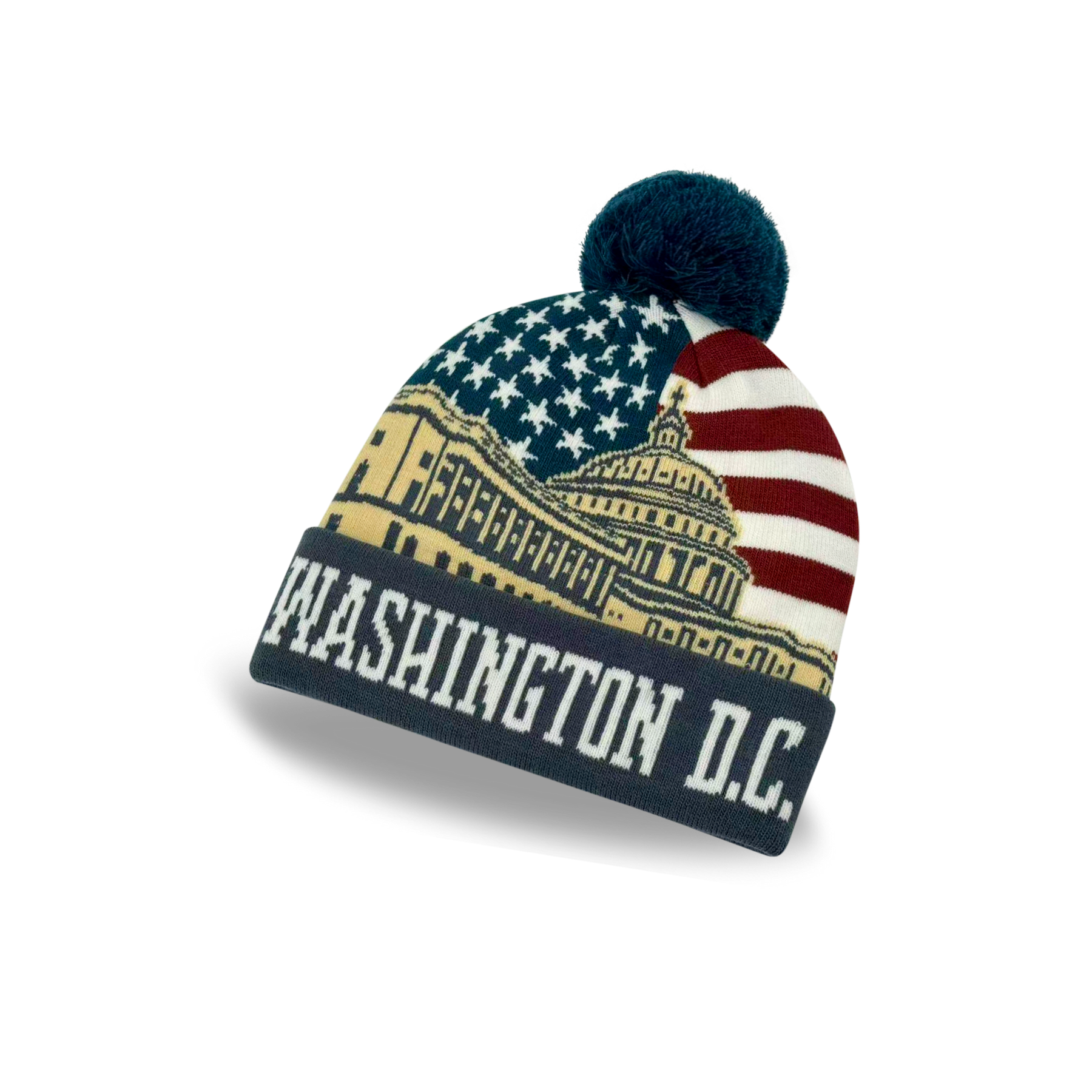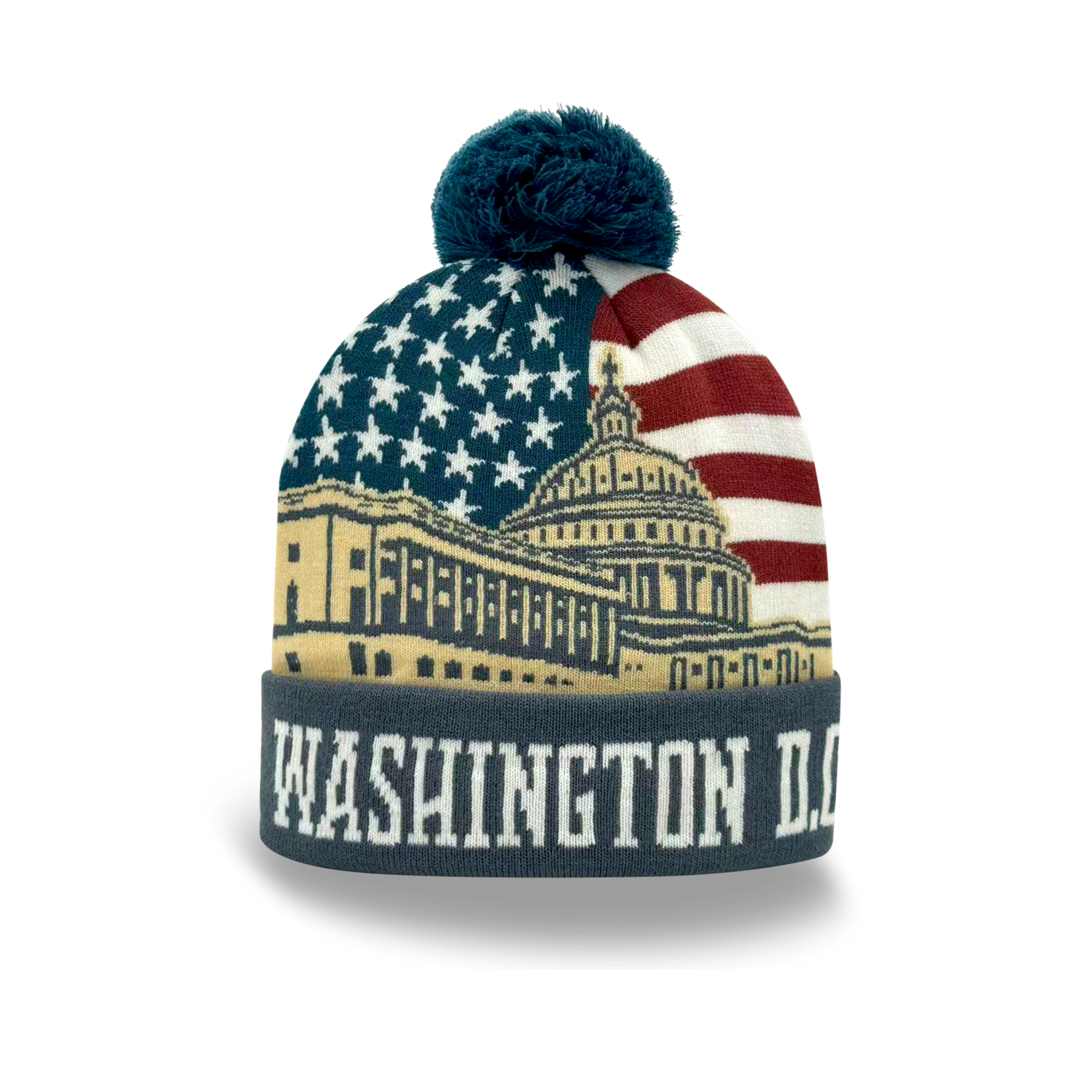 Washington D.C. Capitol American Flag Knit Pom Pom Beanie – USA Winter Hat