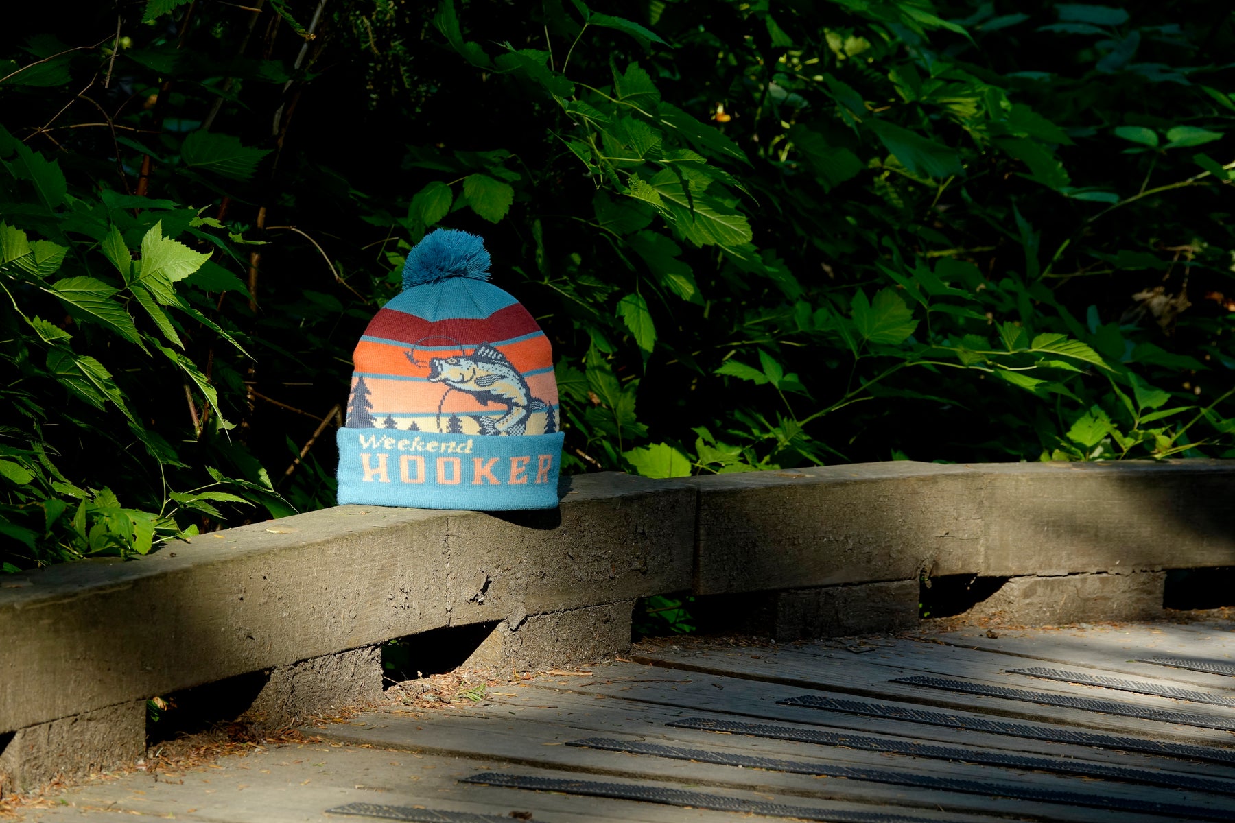Weekend Hooker Knit Beanie Pom Pom Fishing Hat for Outdoor Camping Lake Trips