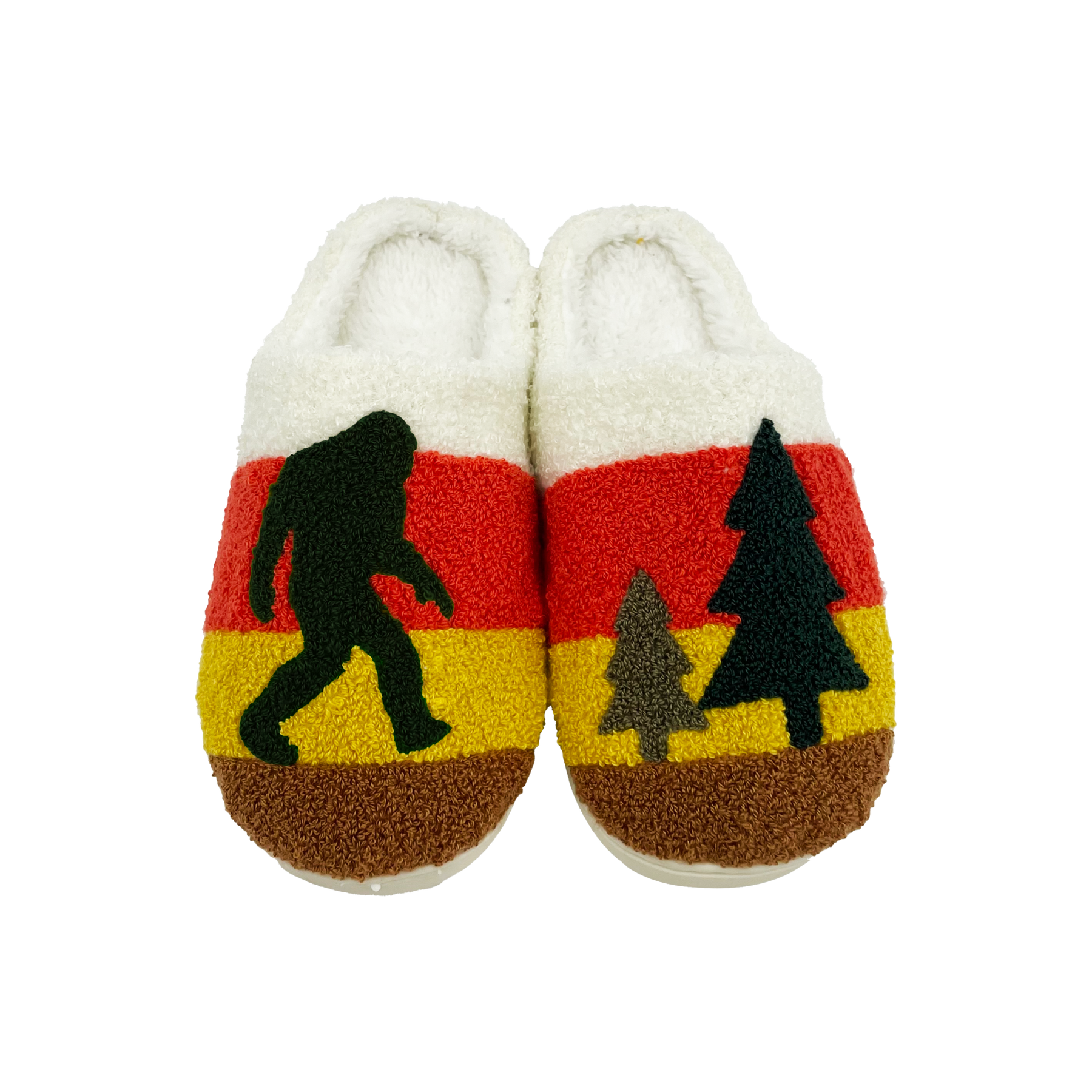 Inspired by the mystical forests of the Pacific Northwest, these slippers feature Sasquatch strolling beneath towering pines and sunset skies—a playful nod to local folklore that brings a touch of adventure to your lounging.