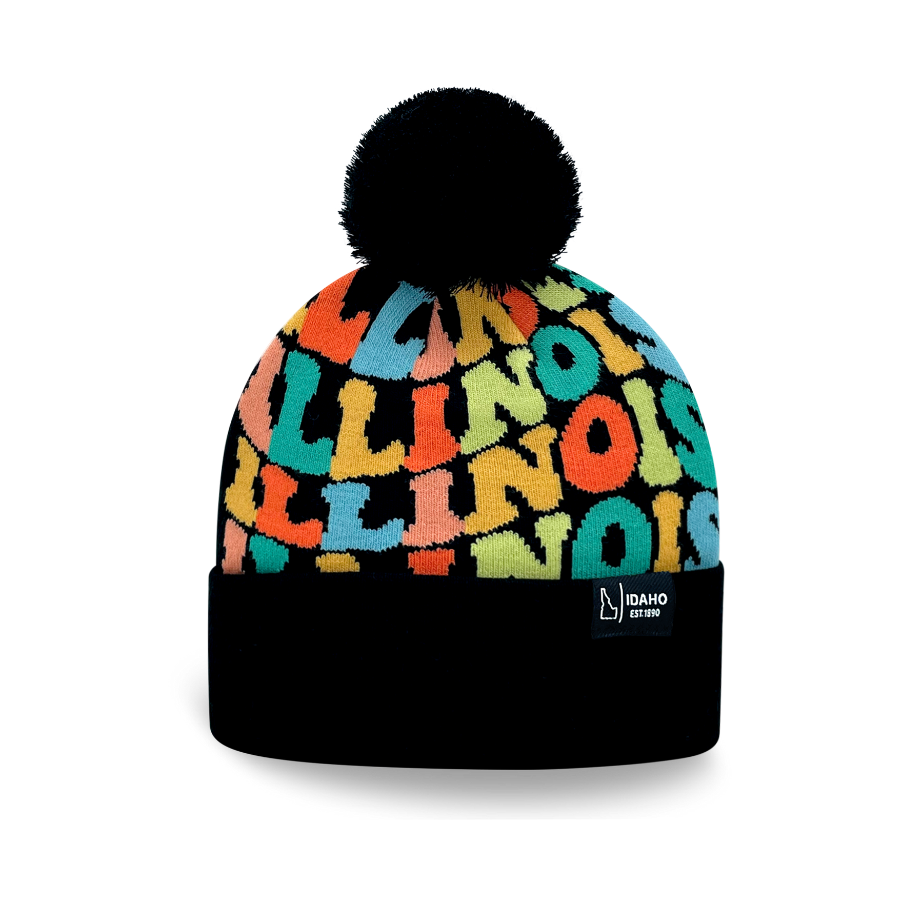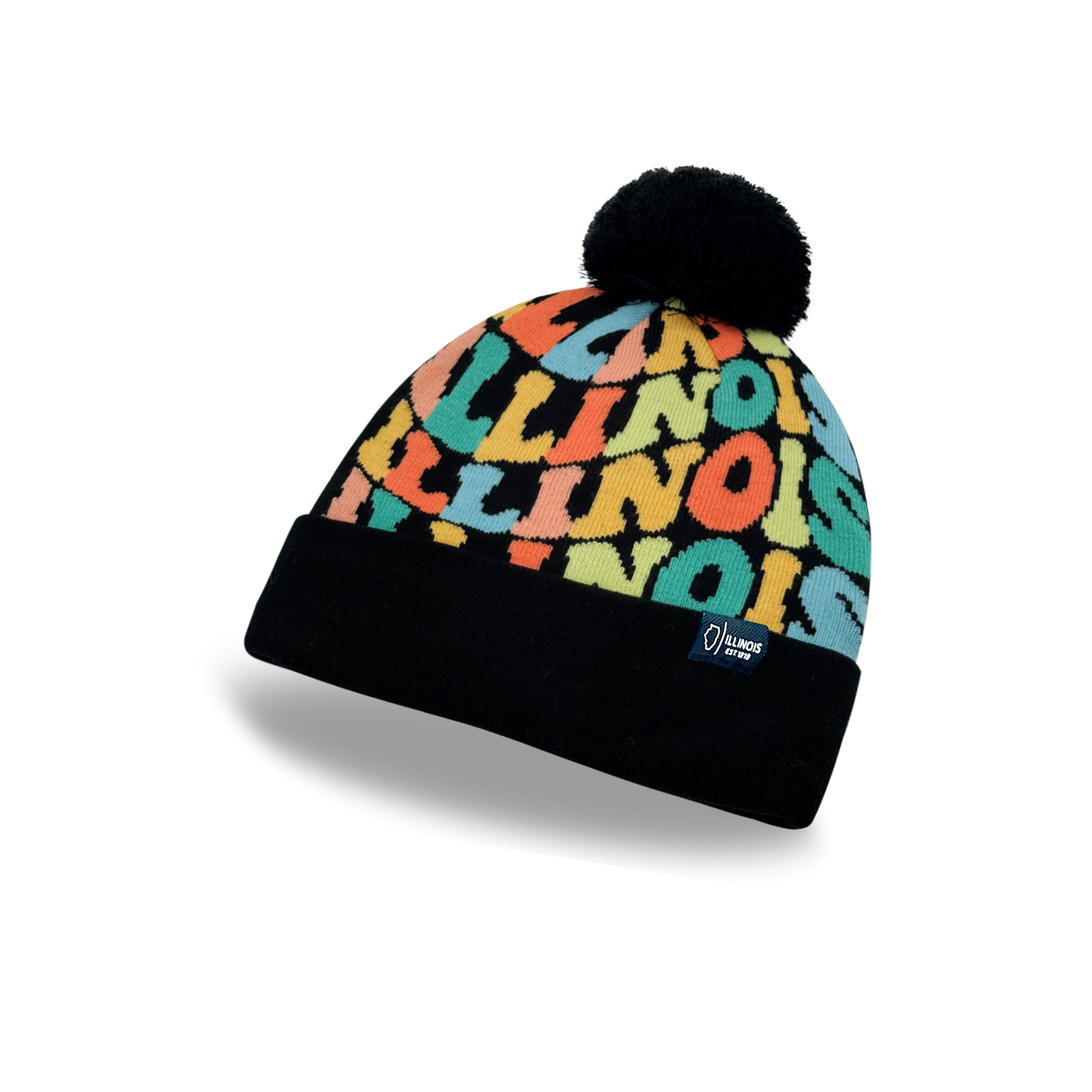 Bring a burst of color and Midwest charm to your winter look with this ILLINOIS Colorful Knit Beanie with Pom Pom. Inspired by the vibrant spirit and cultural energy of Illinois, this beanie features playful “ILLINOIS” lettering in bold retro-style typography. The warm mix of orange, teal, yellow, and coral tones pops beautifully against a deep navy background, creating a design that’s both cheerful and stylish. A soft pom pom tops off the hat, adding a cozy and fun finishing touch — perfect for brightening up cold days.