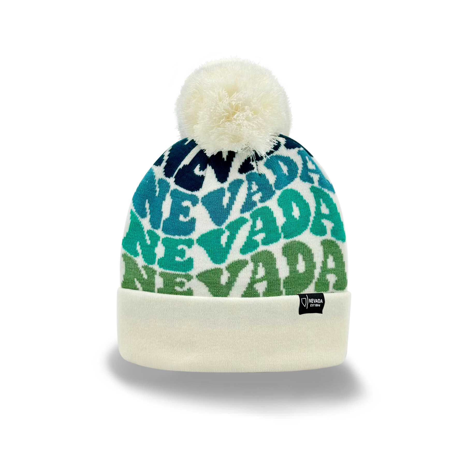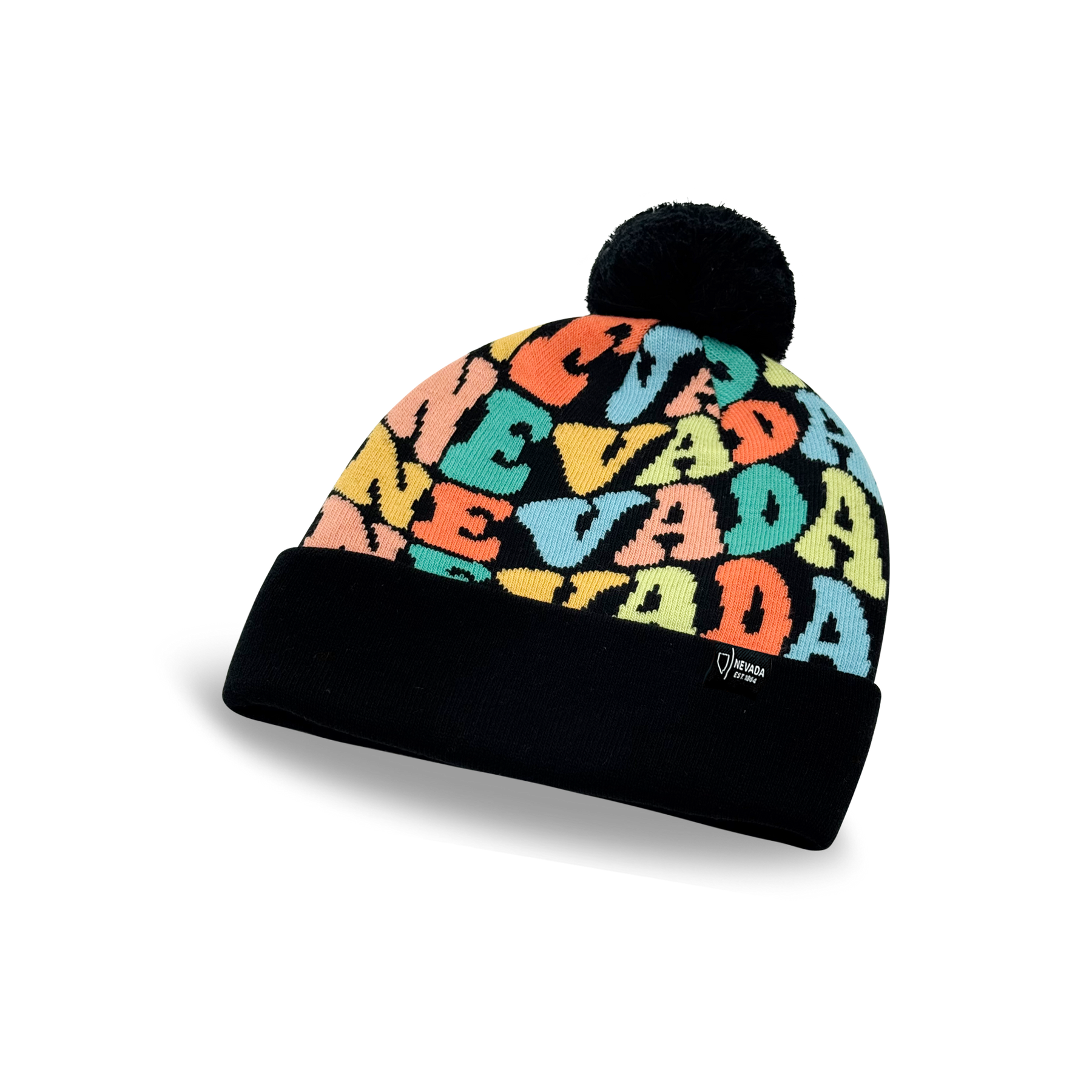 Bring a burst of color and the energy of Nevada to your winter days with the NEVADA Colorful Knit Pom Pom Beanie. Inspired by the state’s bold landscapes and vibrant culture, this beanie features playful “NEVADA” lettering in a retro-style color palette. The cheerful mix of coral, turquoise, yellow, and mint reflects the fun and freedom of Nevada’s desert sunsets and mountain skies.
