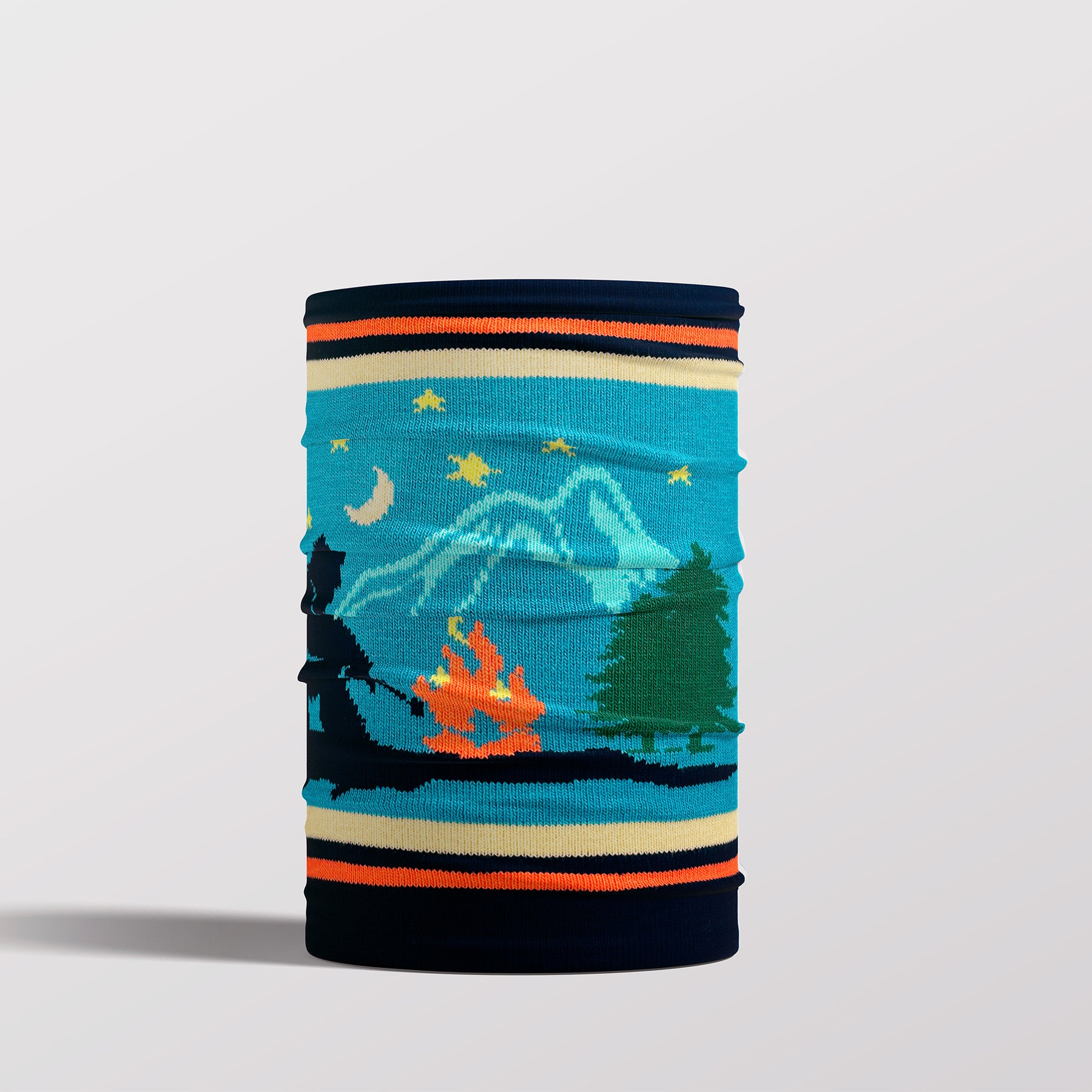 Embrace the mystery of the wilderness with this premium quality knitted scarf featuring the elusive Bigfoot by the campfire. Silhouetted against a moonlit mountain backdrop, this design speaks to the adventurer's spirit, celebrating stories whispered by the fire under a starry sky. Ideal for those who revel in the unknown and love bold outdoor experiences, this scarf is a cozy, stylish companion for winter journeys. With the pattern seamlessly knitted into the fabric, it reflects both durability and artisanal craftsmanship.
