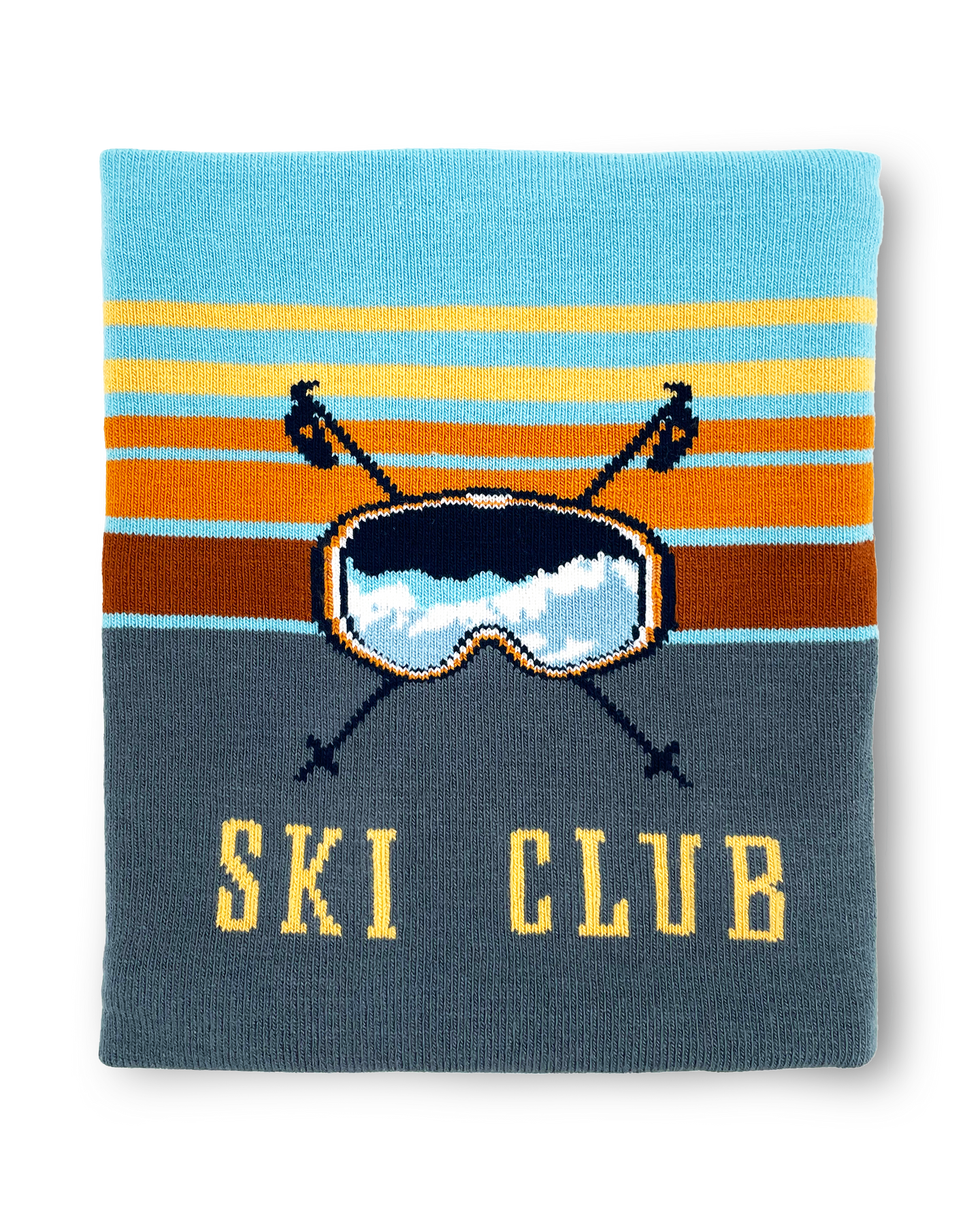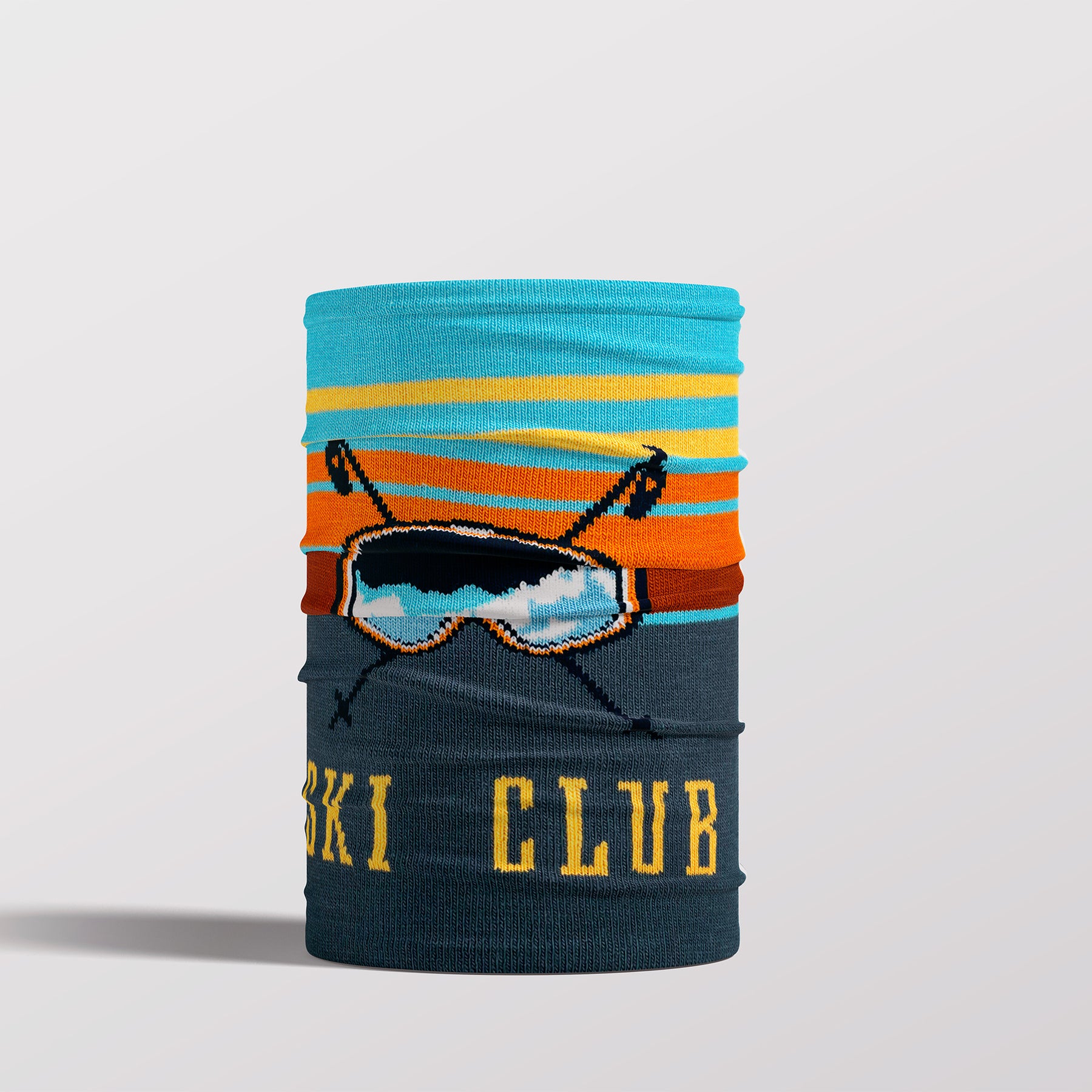 Capture the first light of day on the slopes with the 'Dawn Patrol Ski Club' scarf. Featuring a skier in mid-air against a rising sun, this scarf celebrates the exhilaration of early morning ski runs. Knitted with premium, breathable fabric, it offers both comfort and style for winter sports lovers who seek the thrill of a fresh powder run.