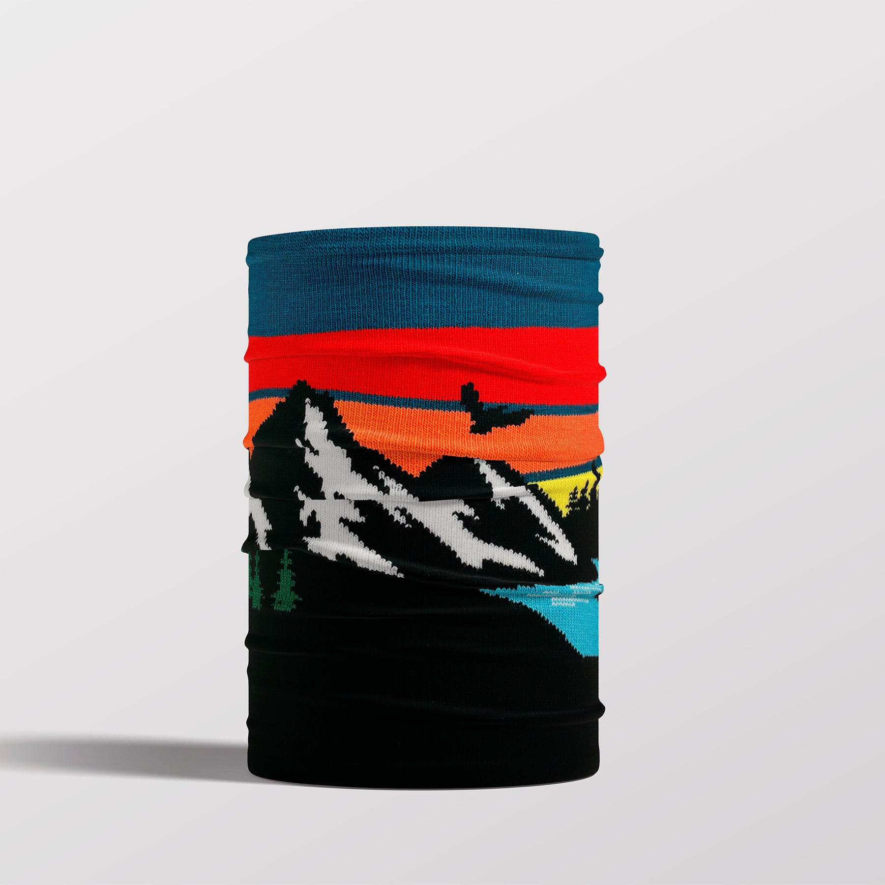 Capture the beauty of twilight with the 'Sunset Ridge' scarf, which features stunning mountain ranges in warm, fiery tones as the sun sets behind them. Perfect for adventurous spirits who seek the thrill of the mountains, this scarf is made from soft, high-quality fabric with a knitted design that ensures durability and warmth.