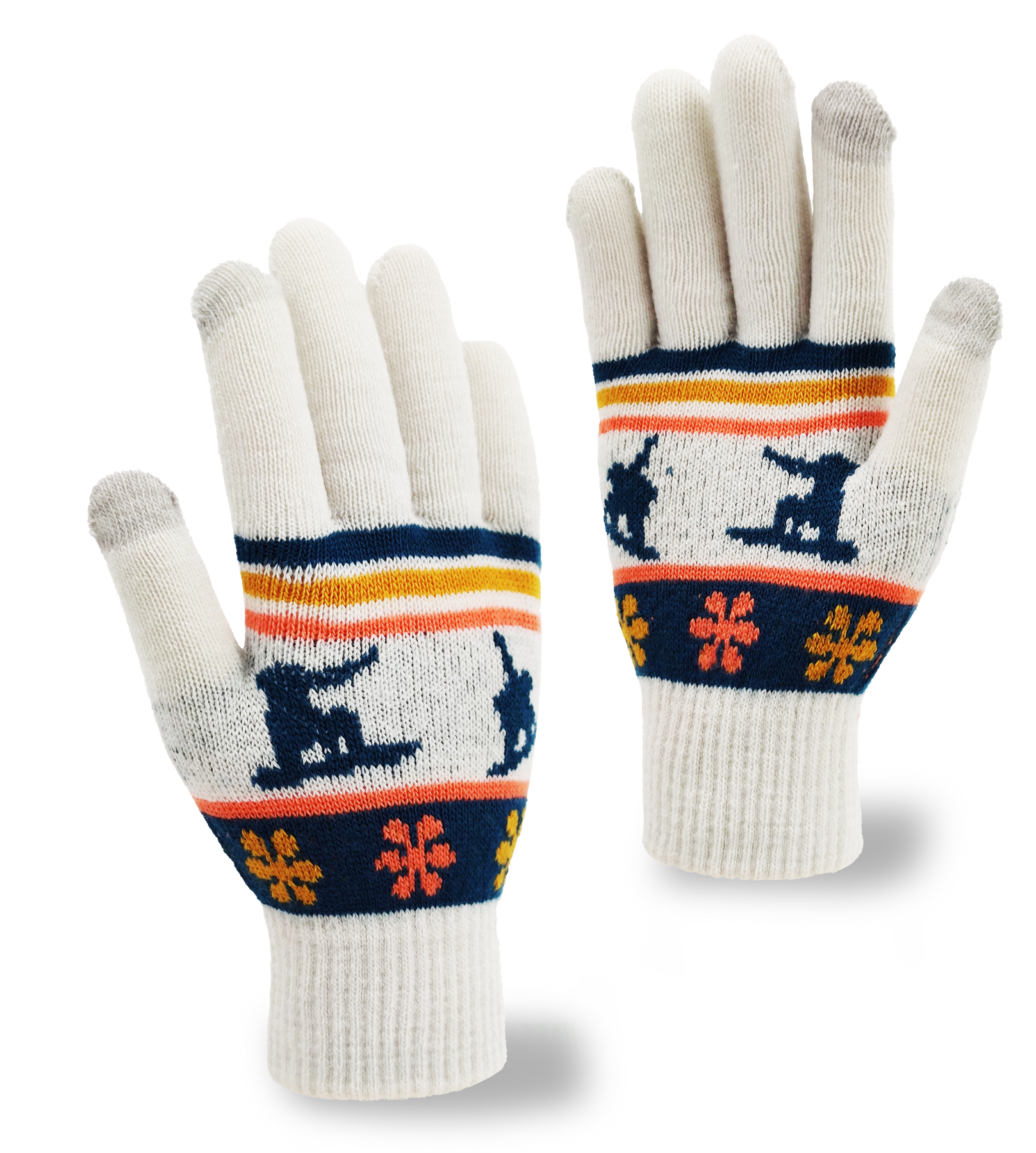 Embrace the thrill of the slopes with the Snow Chaser gloves. Showcasing a dynamic skier against a backdrop of swirling snowflakes and alpine hues, these knitted gloves combine warmth, durability, and comfort, making them a must-have for winter sports enthusiasts.