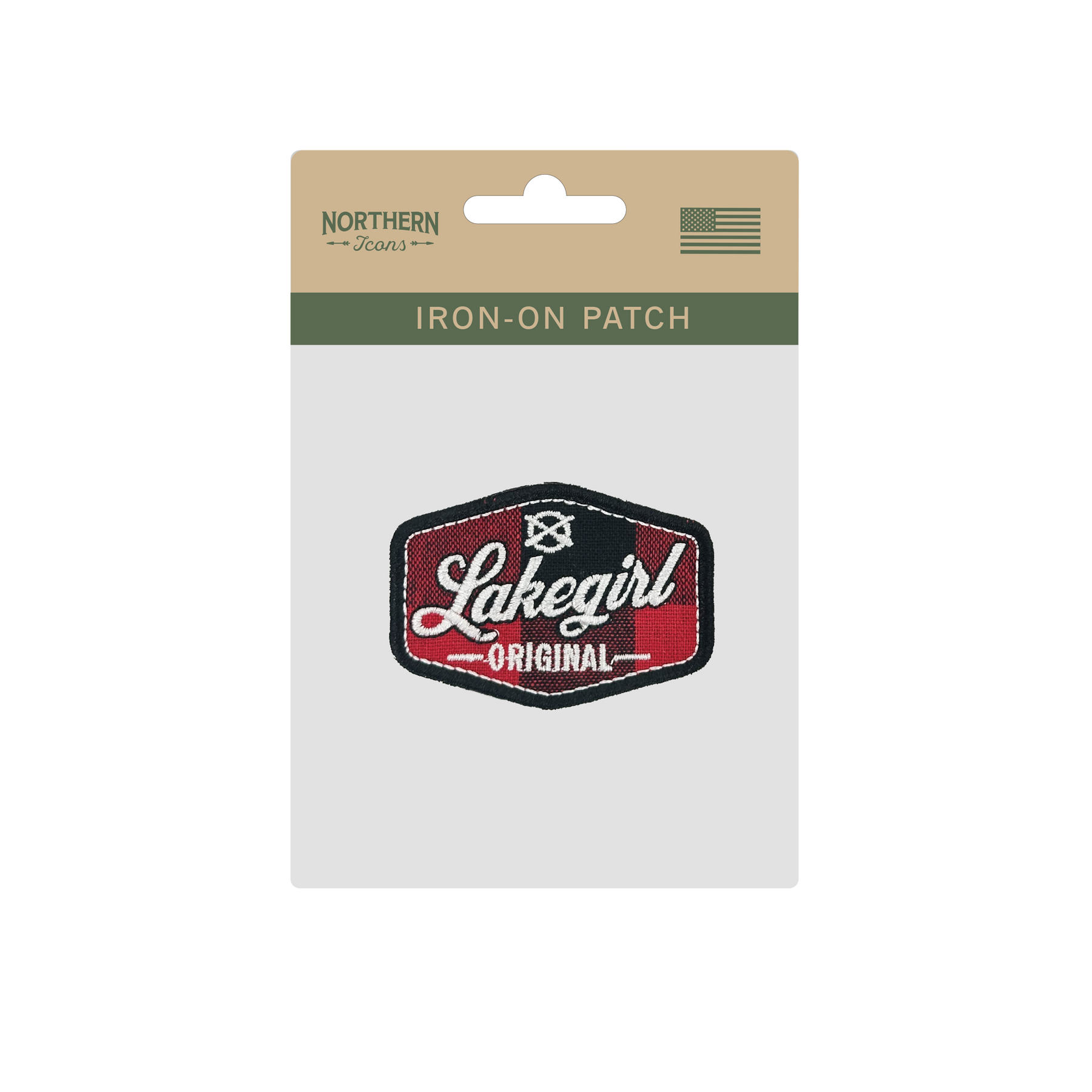 This embroidered patch captures the spirit of lake life and individuality, designed for those who proudly carry their love for the outdoors. The patch features the bold script "Lakegirl" paired with “Original” lettering, set against a classic red-and-black checkered background. This timeless pattern evokes rustic cabins, cozy flannels, and lakeside adventures. Its compact shield shape adds a vintage touch, making it ideal for jackets, hats, backpacks, or any gear that needs a personal accent. With an iron-on backing, it’s easy to apply, and sewing ensures long-lasting wear.