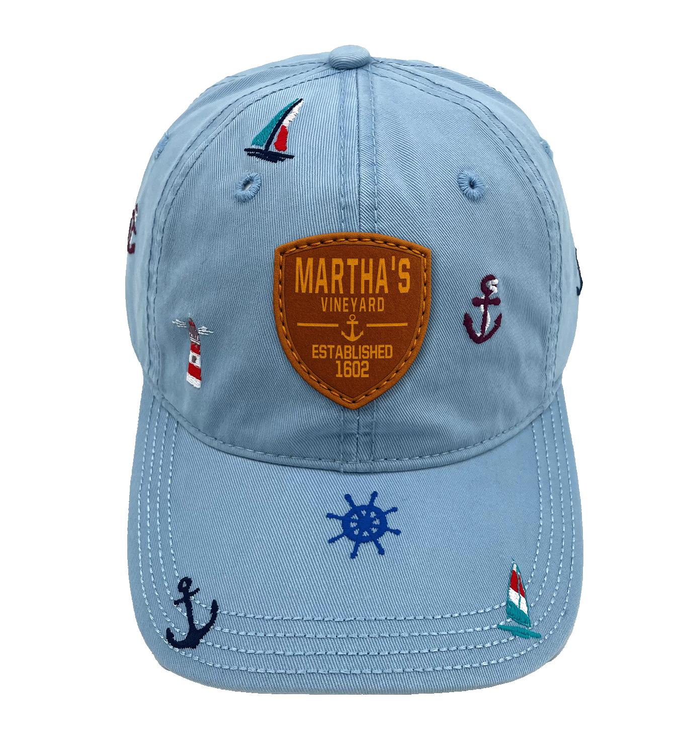 Add a touch of seaside charm with this Martha’s Vineyard Massachusetts baseball cap. Featuring sailboats, anchors, lighthouses, and helms, it reflects the beauty of coastal exploration and ocean life. A bold Martha’s Vineyard patch emphasizes local identity, while the low-saturation base color keeps the style modern and versatile. Perfect for beach walks, sailing trips, or everyday wear.