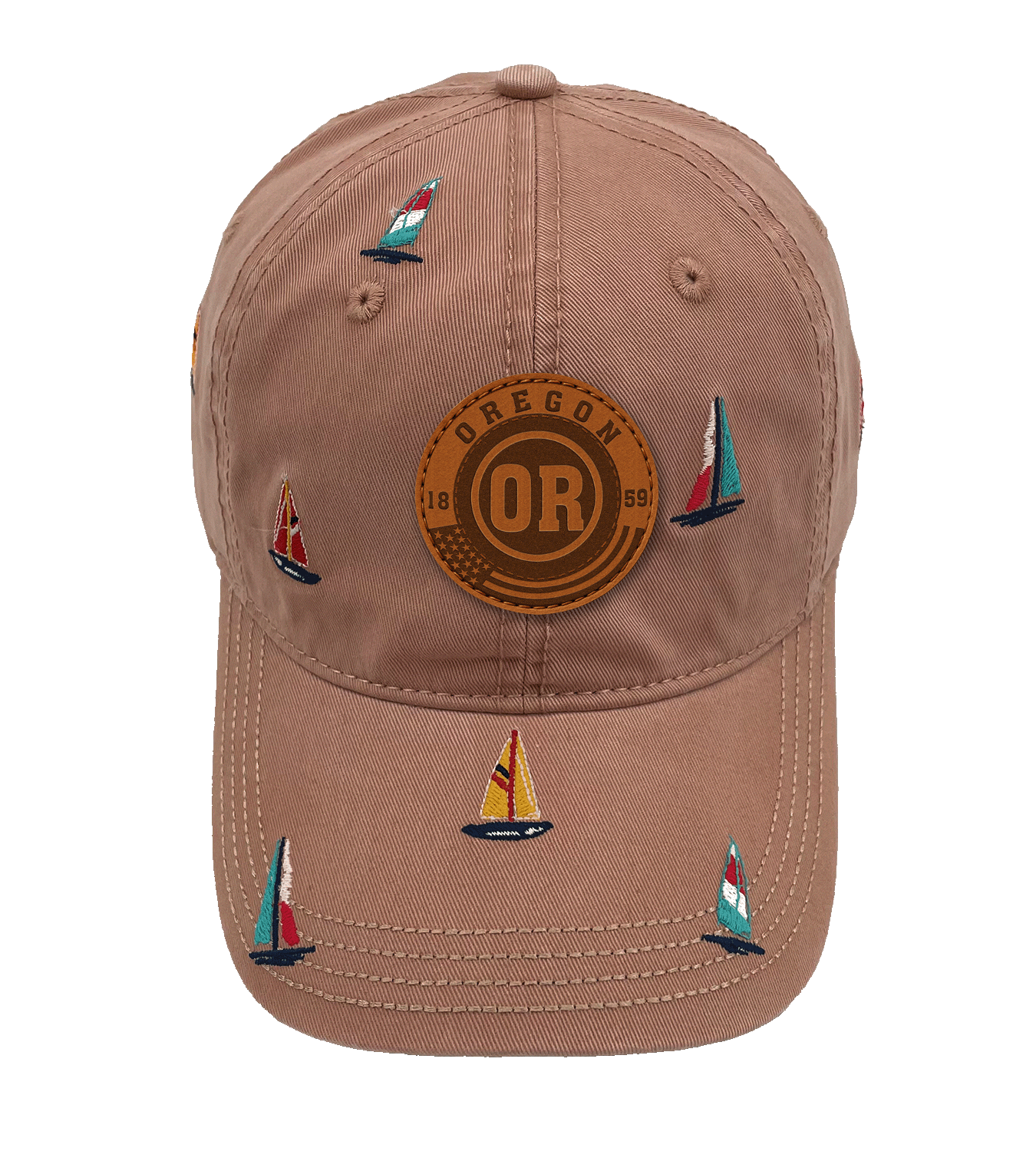 Add a touch of nautical heritage with the Oregon Sailing Adventure Baseball Cap. Inspired by the Pacific Northwest’s coastal charm and maritime traditions, the design features embroidered sailboats in lively colors, symbolizing the adventurous spirit of Oregon’s shoreline. The central faux-leather patch highlights “OREGON EST. 1859” with the initials “OR,” paying tribute to the state’s history and connection to the sea. The cap’s low-saturation base color enhances the seaside theme, making it a versatile accessory for waterfront outings and everyday wear. Perfect for travelers, outdoor lovers, and those who embrace a breezy, ocean-inspired lifestyle.