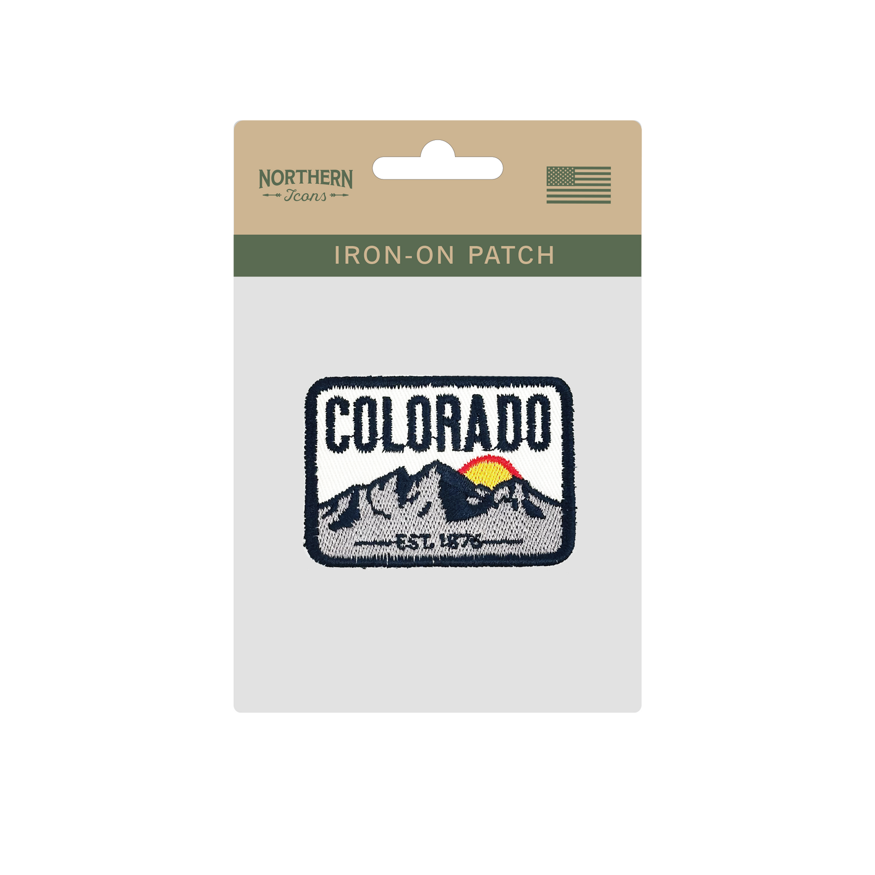 This embroidered patch highlights the rugged peaks of Colorado with the rising sun peeking above the mountains. Its clean rectangular design and bold lettering make it a timeless tribute to the Centennial State. Perfect for travelers, hikers, and mountain lovers, it brings a sense of adventure and pride to any gear or apparel.