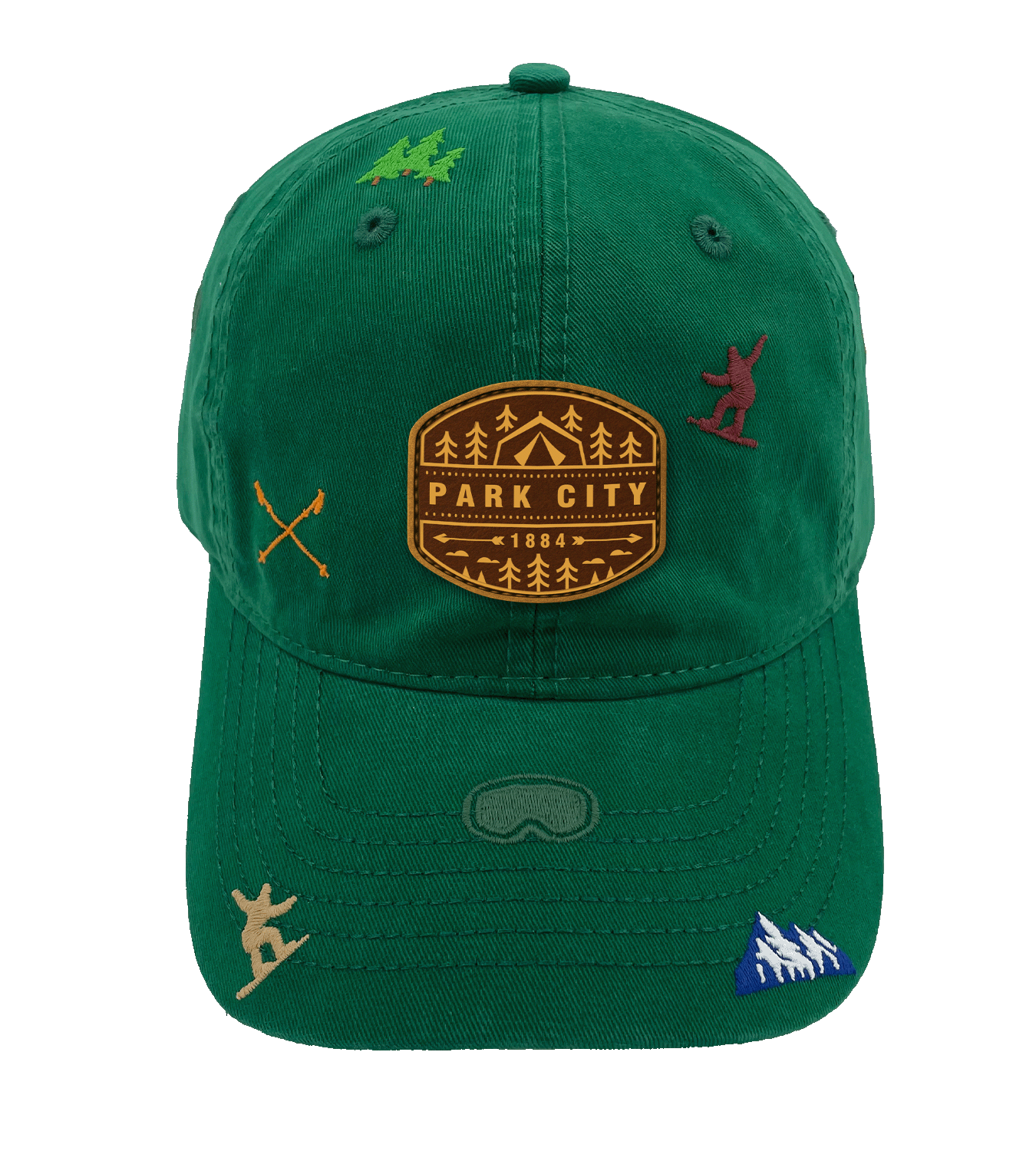 Add a touch of alpine adventure with the Park City Ski Adventure Baseball Cap. Inspired by Utah’s Wasatch Range and the world-famous ski slopes of Park City, the design features embroidered details such as skiers, snow-capped peaks, goggles, pine trees, and crossed ski poles. The central faux-leather patch highlights “PARK CITY 1884,” celebrating the town’s heritage and mountain culture. The rich base color enhances the alpine theme, making it a versatile accessory for winter sports and casual wear. Perfect for outdoor enthusiasts, travelers, and anyone who loves mountain-inspired style.