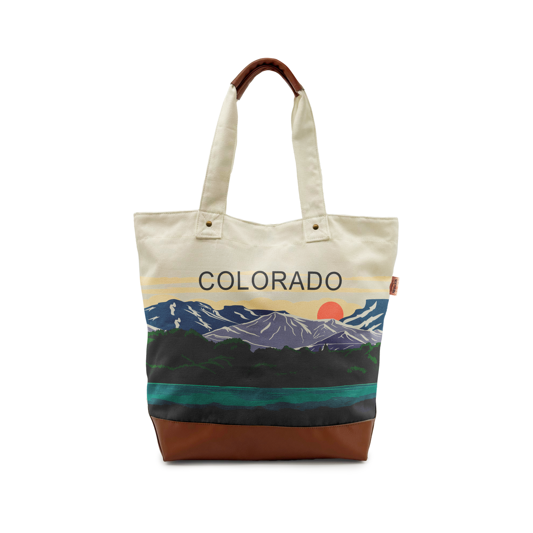 Capture the breathtaking beauty of the Rockies with the Colorado Sunset Vista Tote Bag, where nature’s palette comes to life. Featuring a hand-illustrated scene of Colorado’s iconic mountain ranges bathed in golden hour hues, this design transports you straight to tranquil lakeshores and snow-capped peaks. The vibrant sunset and serene landscape embody the spirit of adventure and the timeless charm of Colorado’s great outdoors, making this tote the perfect tribute to mountain life.