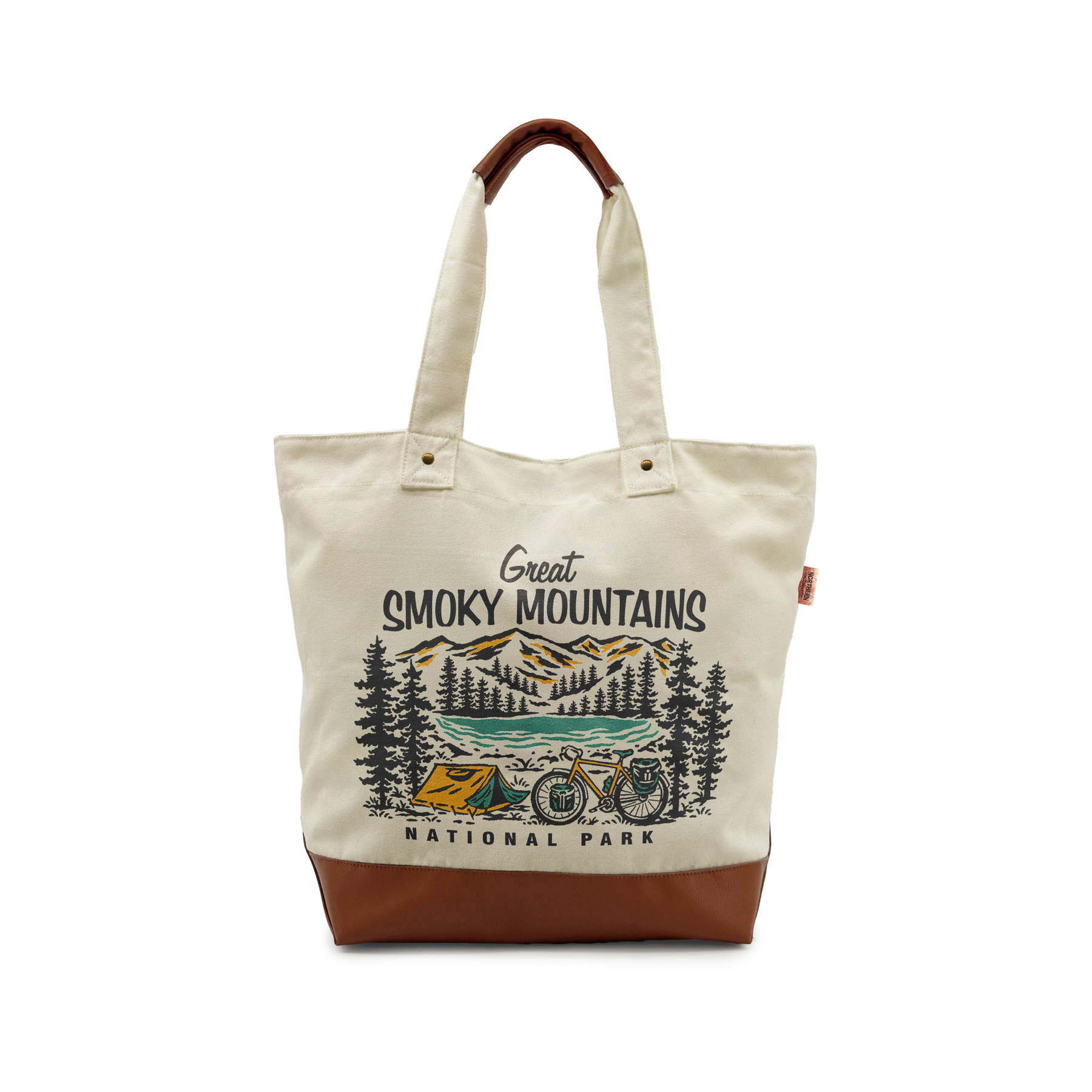 The SMOKY MOUNTAINS SCENIC Canvas TOTE BAG is the perfect blend of fashion and functionality. The magnetic closure and sturdy faux leather bottom make it a durable choice for all your daily needs. Its spacious interior, inner pockets, and versatile design make it a must-have for travel and everyday use. Take a piece of the great outdoors with you wherever you go with our Great Smoky Mountains Scenic Tote Bag! Perfect for outdoor adventure stores, destination gift shops, and travel souvenir boutiques. Carry your gear in style and show off your love for nature.