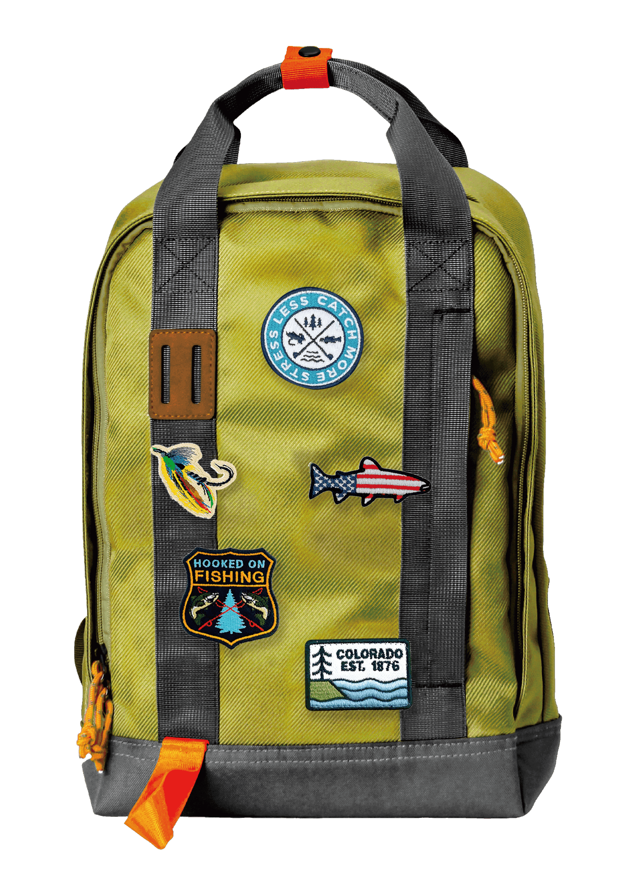 The Catch & Trek Backpack is built for those who find adventure near rivers, lakes, and wild trails. Featuring a bold front decorated with embroidered outdoor-inspired patches—from fishing lures to evergreen trees—it brings a rugged charm to any outing. The structured 14.5L capacity provides ample space for daily carry, with an interior compartment system for smart organization. Its water-resistant shell and reinforced base make it a reliable partner from dock to trailhead.