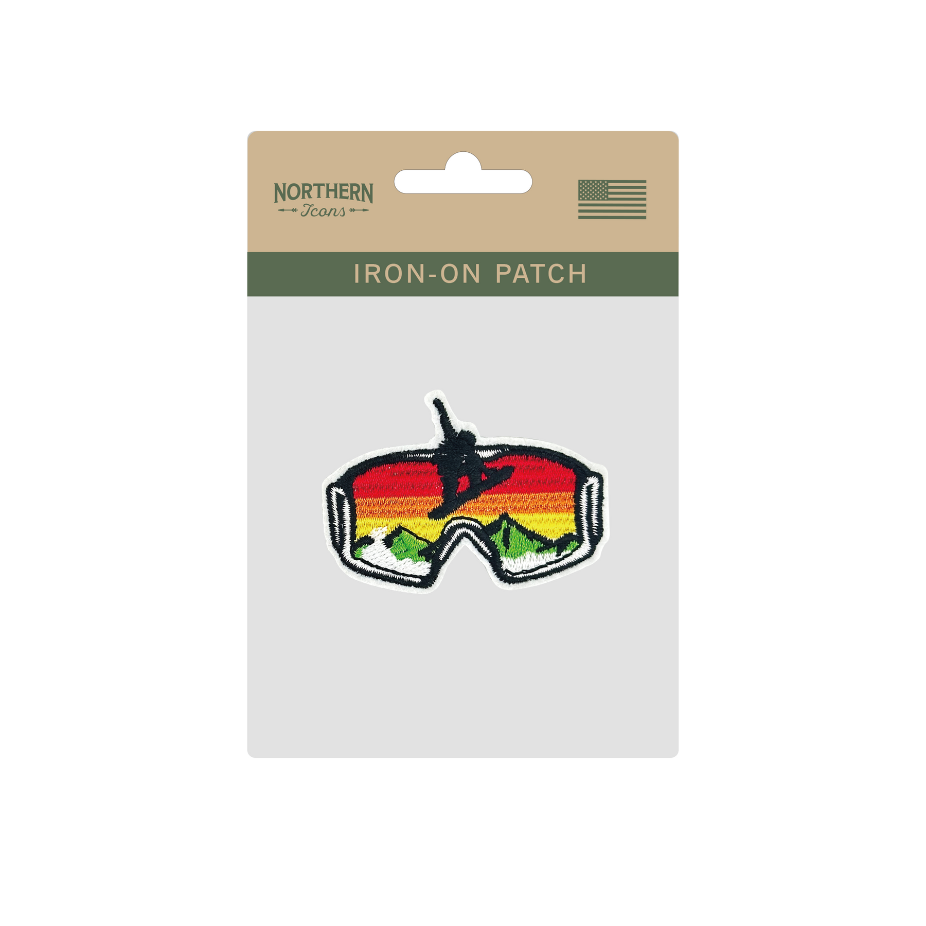 This embroidered patch combines the thrill of the slopes with a bold patriotic twist. Featuring ski goggles with snow-capped mountains reflected above and a striking flag-inspired design across the lenses, it perfectly captures the adventurous winter spirit. Its unique shape and high-detail embroidery make it stand out on jackets, backpacks, or outdoor gear. The iron-on backing allows for easy application, while sewing ensures extra durability.